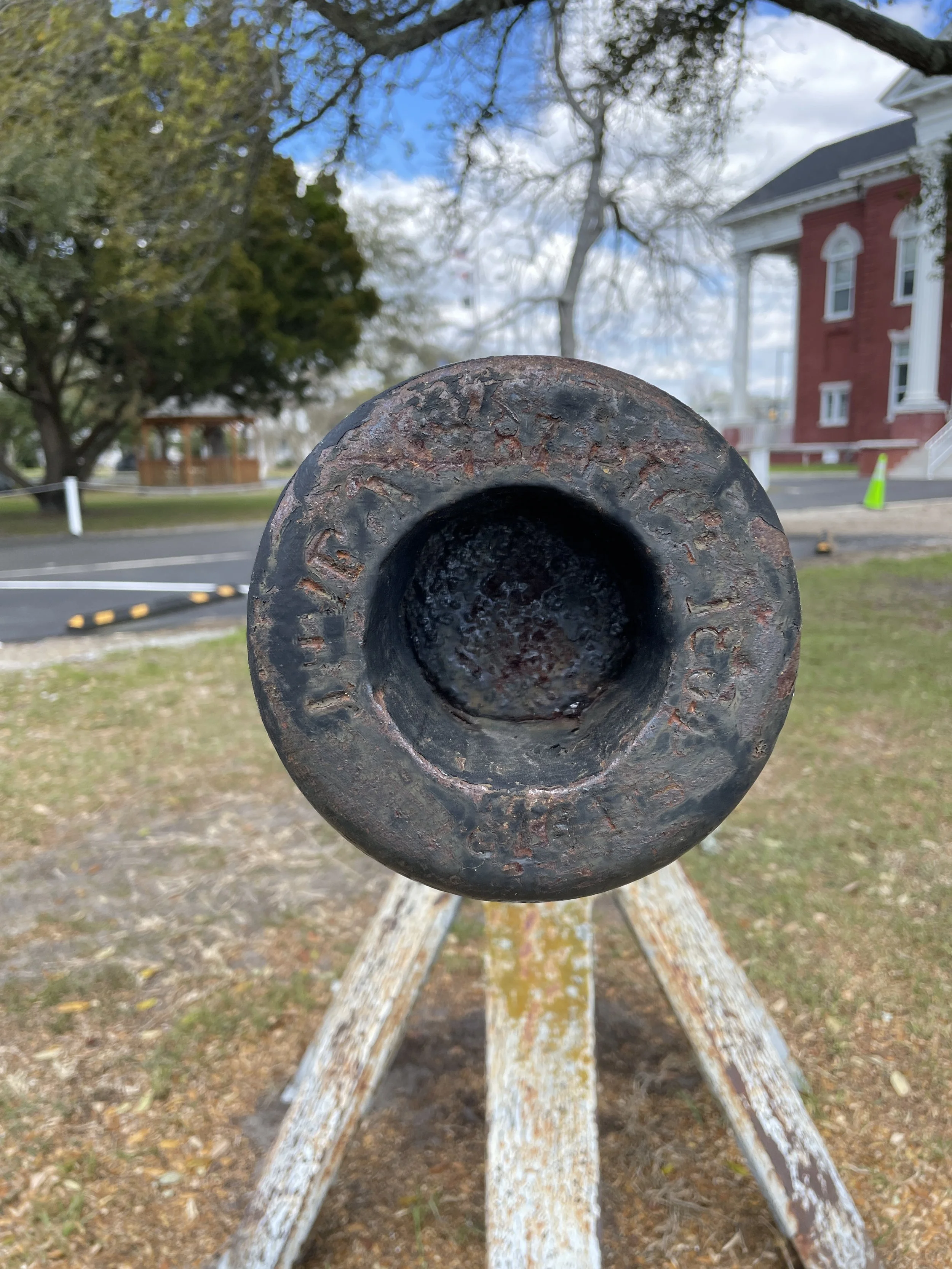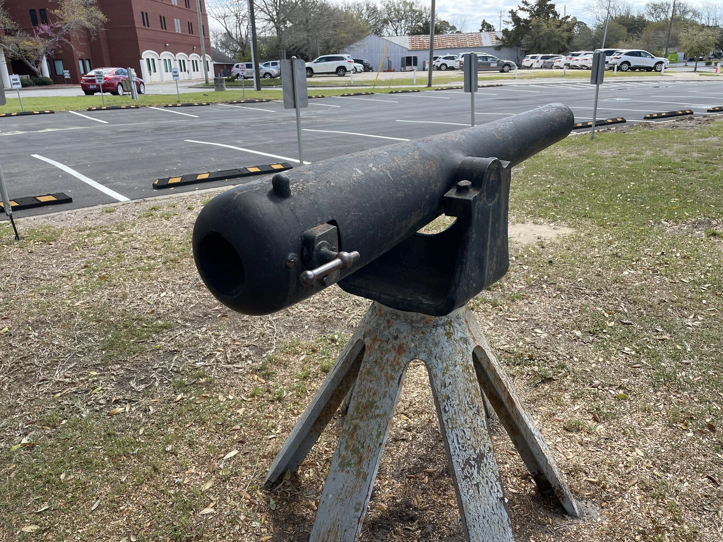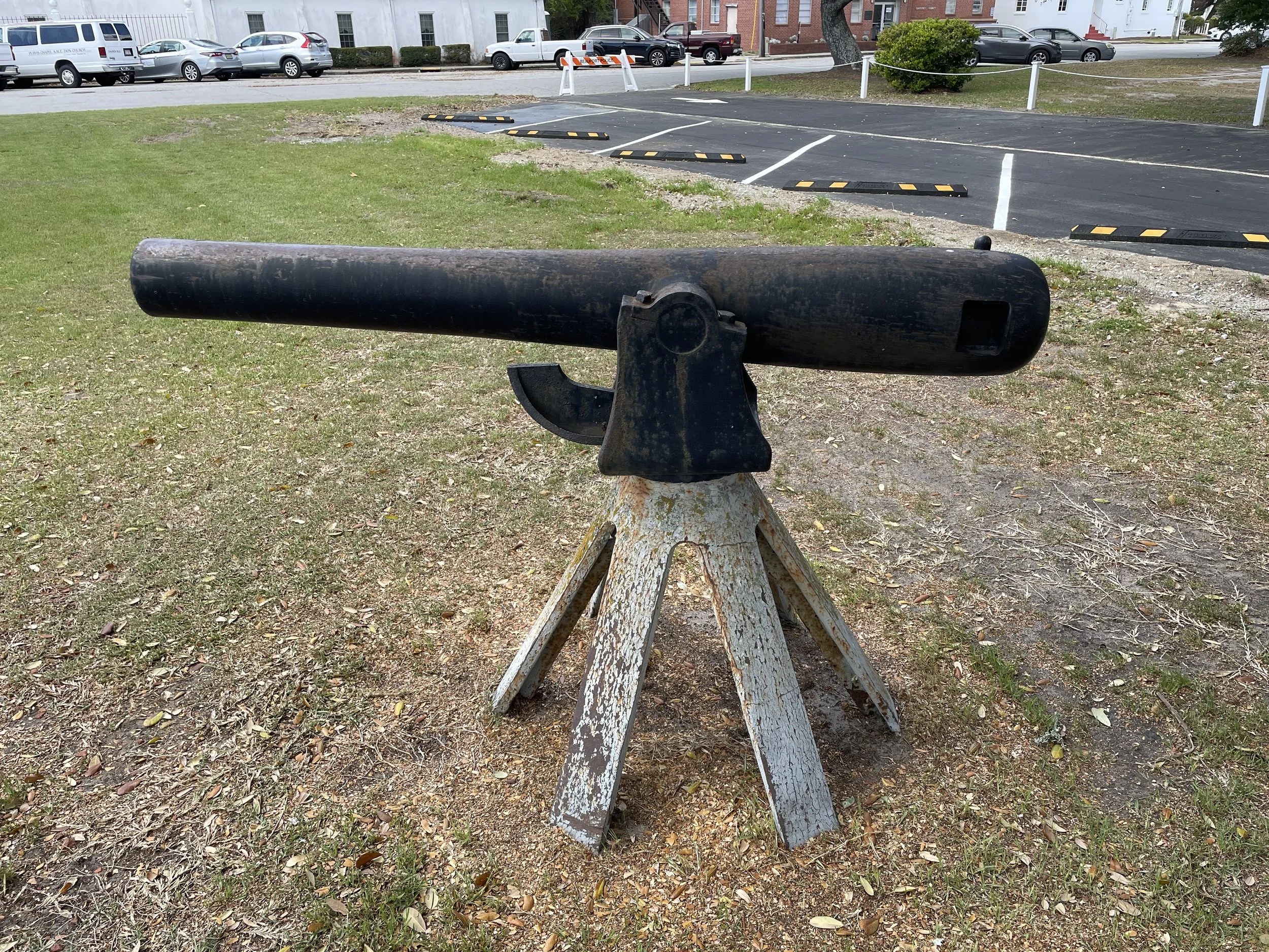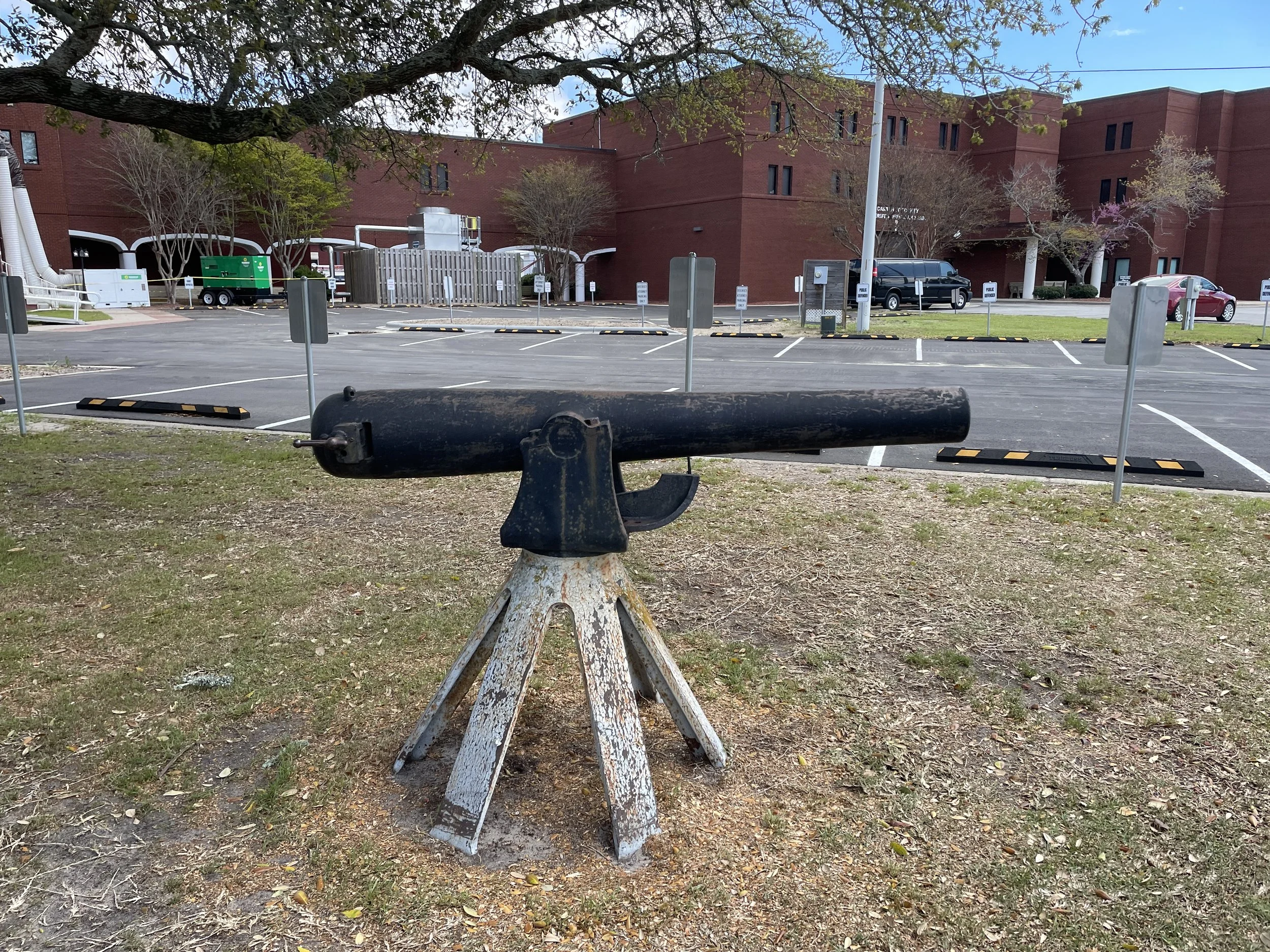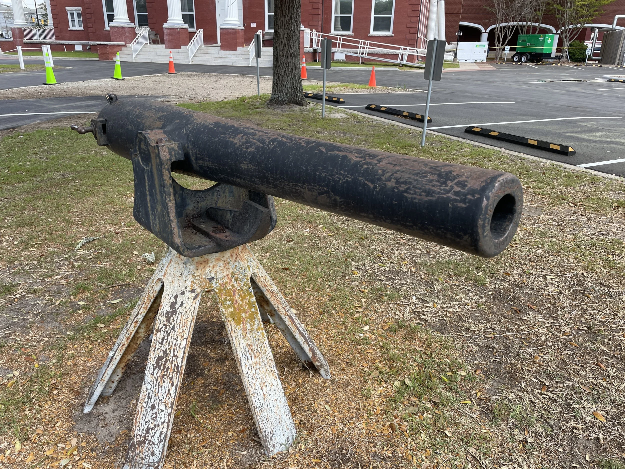 A US Army 3-Inch Ordnance Rifle, Number 787, which was originally manufactured as a standard muzzle loader in 1864 at the Phoenix Iron Company, is displayed outside the Carteret County Courthouse in Beaufort, North Carolina