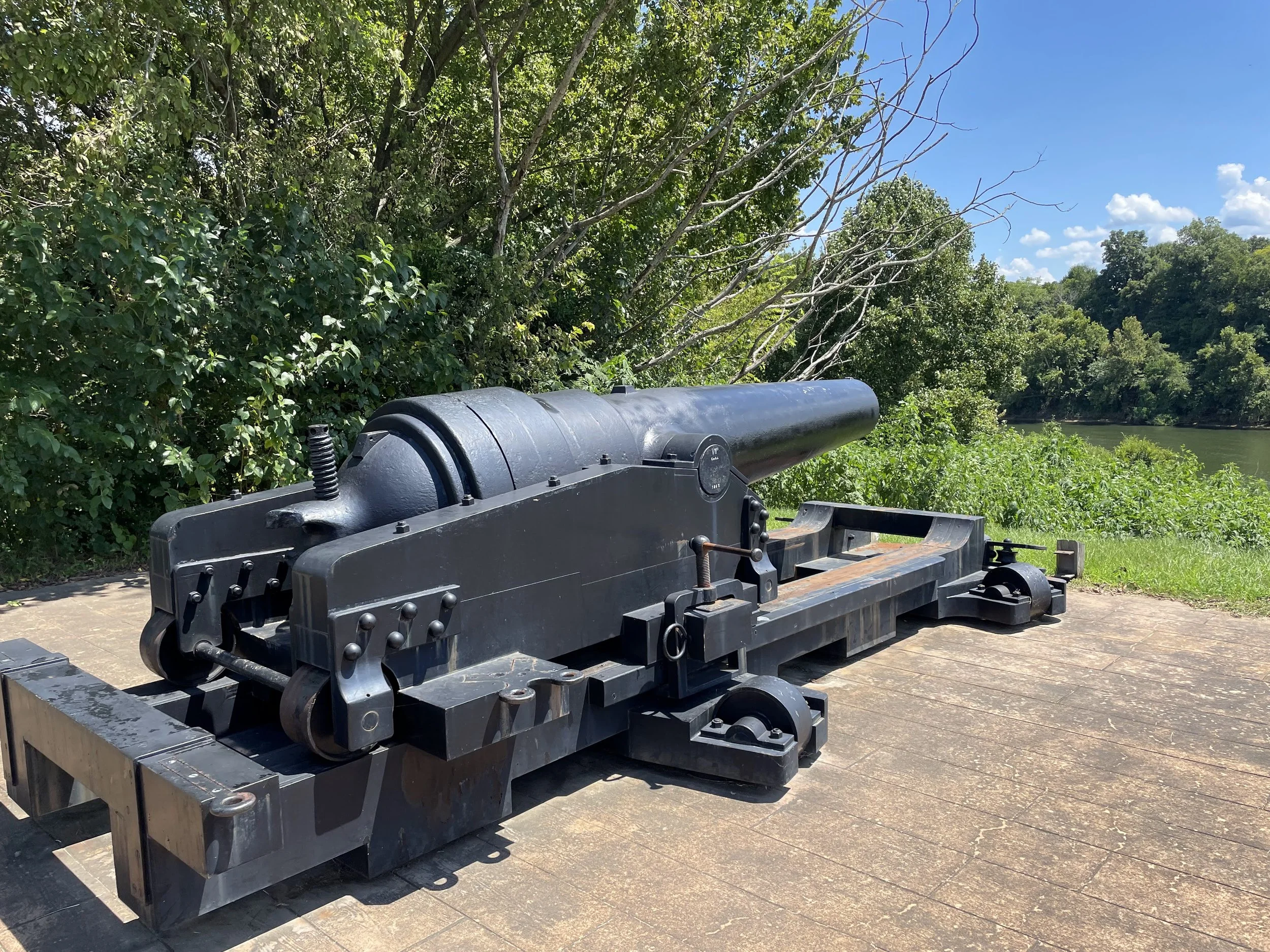 7-Inch Double Banded Brooke Rifle, S111, is displayed overlooking the Chattahoochee River in Columbus, Georgia