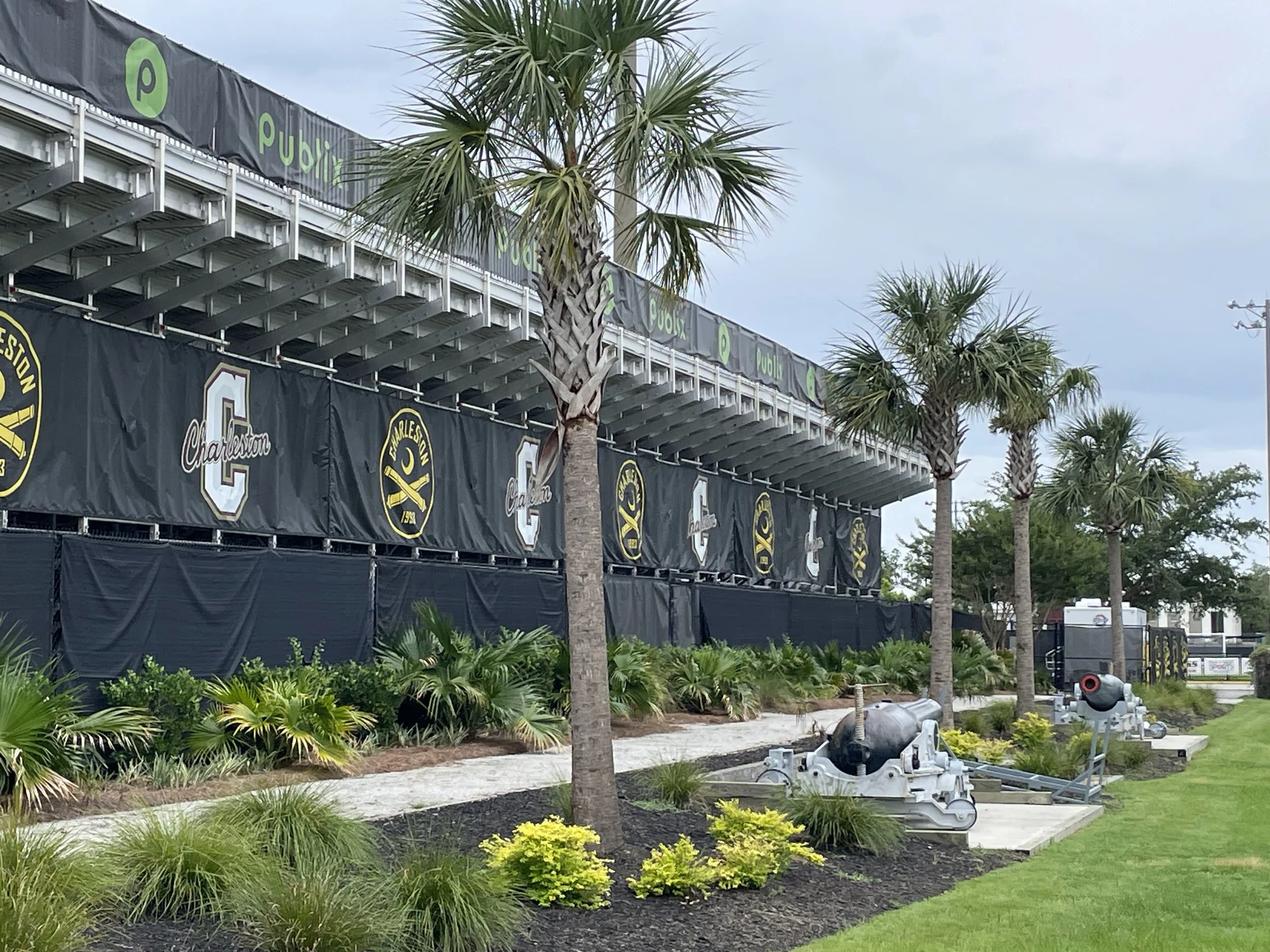 US Navy 8-Inch Muzzle Loading Rifle Number 44 is one of four of the type displayed outside the Patriots Point Soccer Stadium in Mount Pleasant, South Carolina.