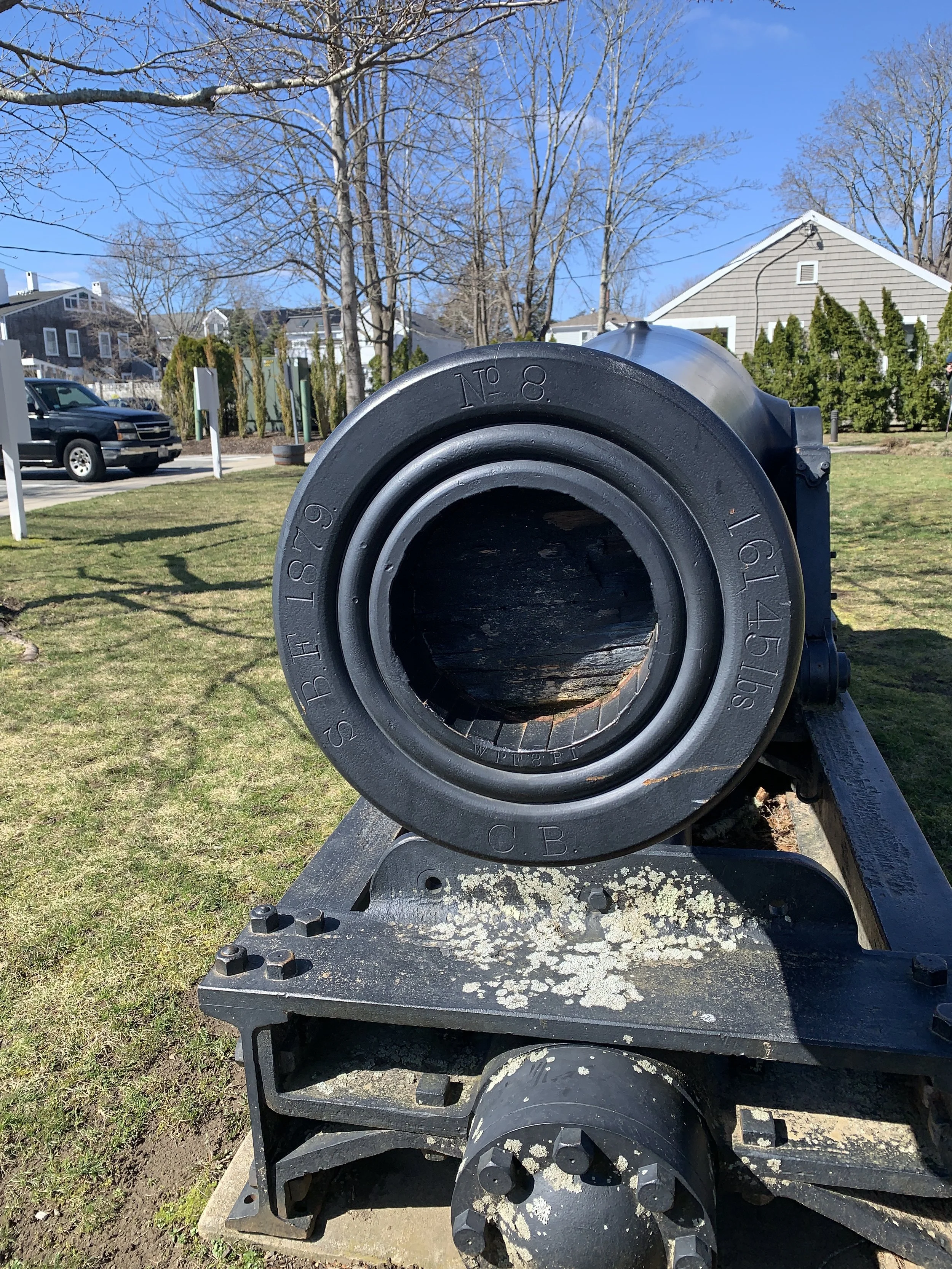 A US Army 8-Inch Muzzle Loading Rifle, Number 8, displayed in Mattapoisett, Massachusetts. Photo by Scott R. Barrow.