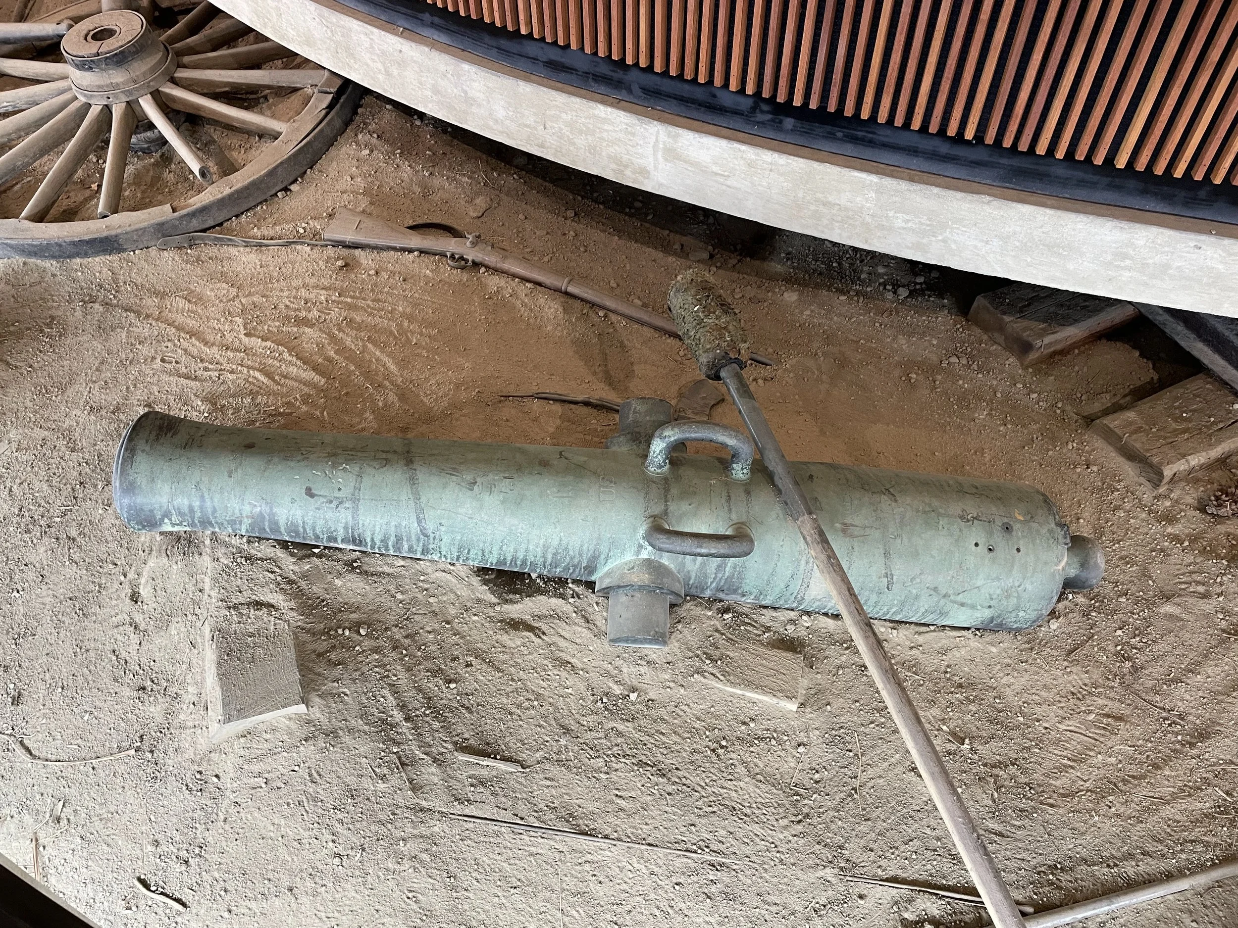 Two early examples of US Army 12-Pounder "Napoleons" are displayed at Petersburg National Battlefield. Having handles above their trunnions, they are among the first examples of the 12-Pounder, Light, Pattern 1857 manufactured for the US Army. According to the registry in Olmstead et al., Petersburg National Battlefield displays Ames Manufacturing Numbers 1 and 12. Number 12, cast in 1861, is displayed outside, which leads me to believe that it is Ames Number 1, cast in 1857, is part of a display of the detritus of battle in the visitor's center. As I didn't think the Park Rangers would appreciate me jumping into said display, I am afraid I don't have closeups of the muzzle of the second Napoleon for you.