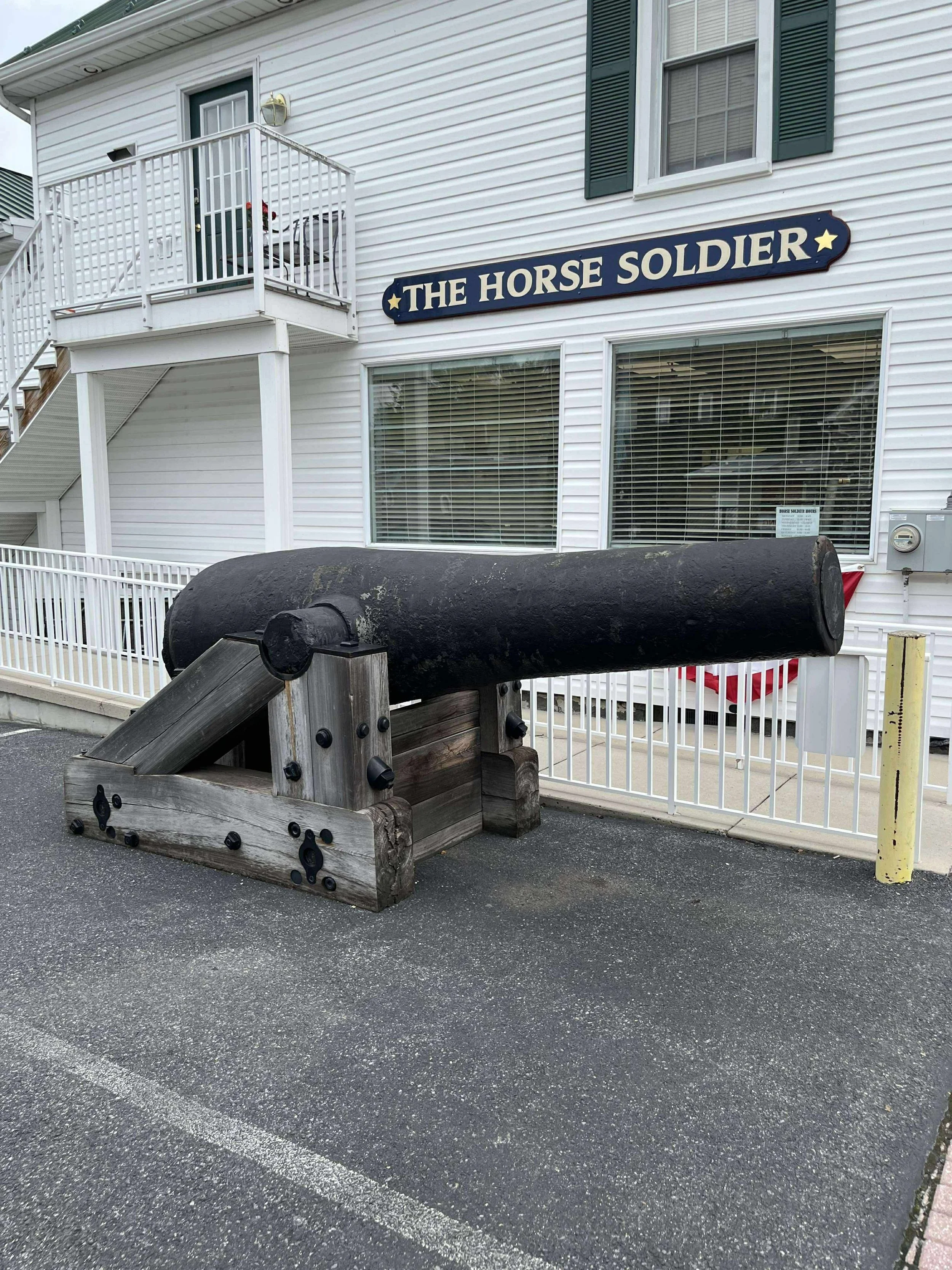 10-Inch Tredegar Number 1873, Cast in 1863, Recovered from schooner Philadelphia, displayed as of Summer 2025 at The Horse Solider, Gettsyburg