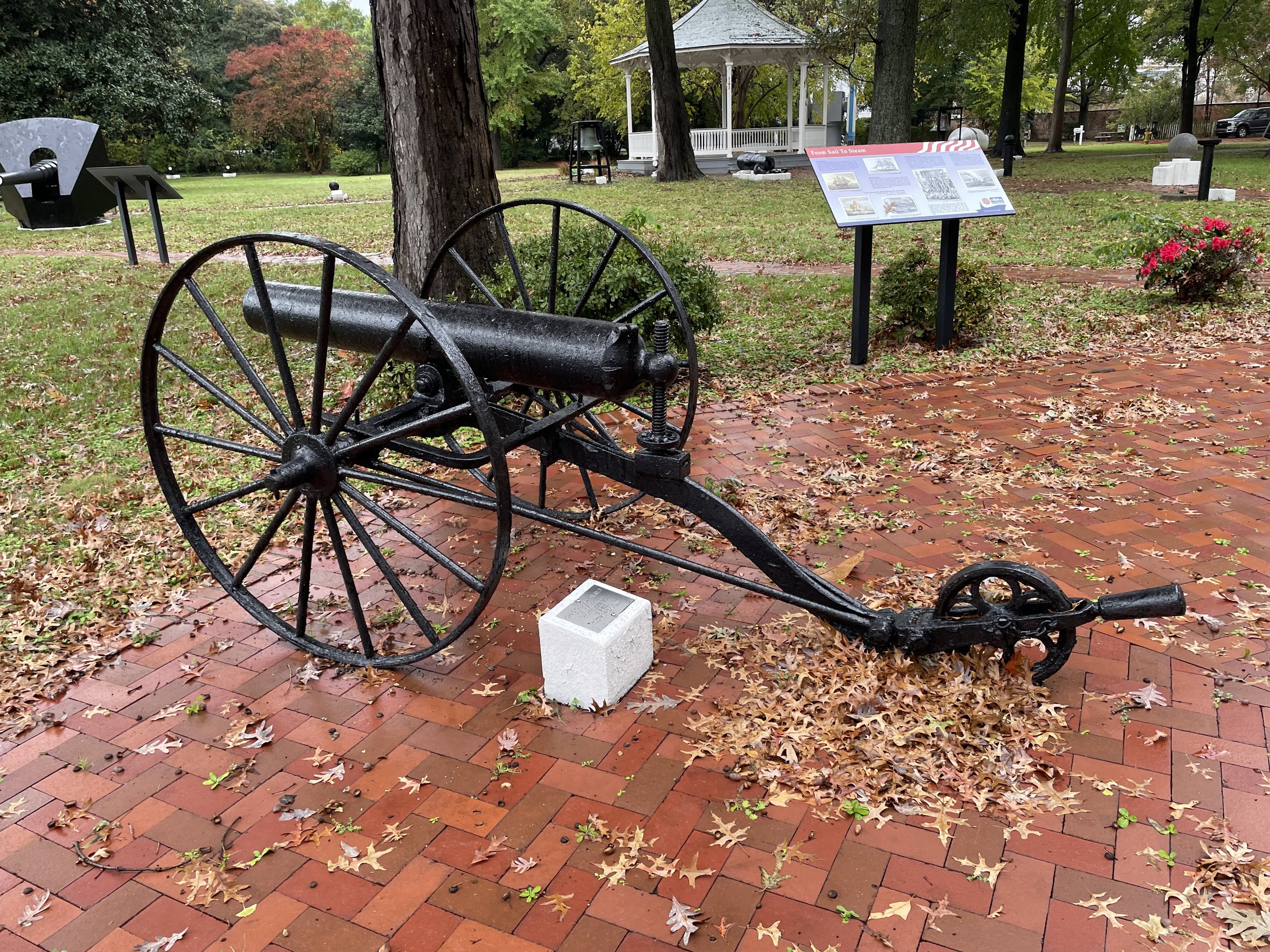 A US Navy 12-Pounder Dahlgren Boat Howitzer (Heavy), Registry Number 36, is displayed in Trophy Park at Norfolk Naval Shipyard. It was cast in 1854 at the Washington Navy Yard. It served aboard USS Constellation from 1854 to 1866.