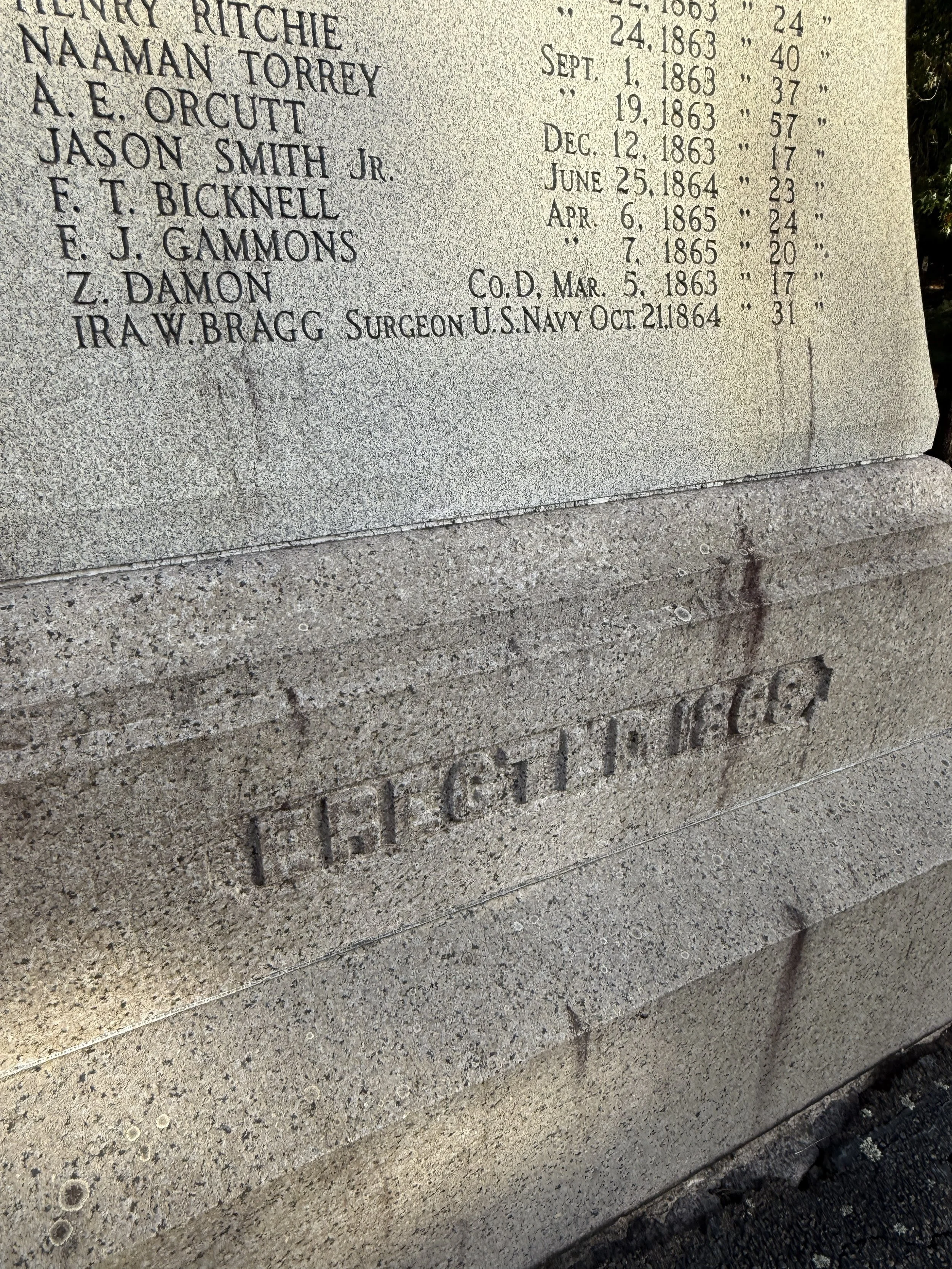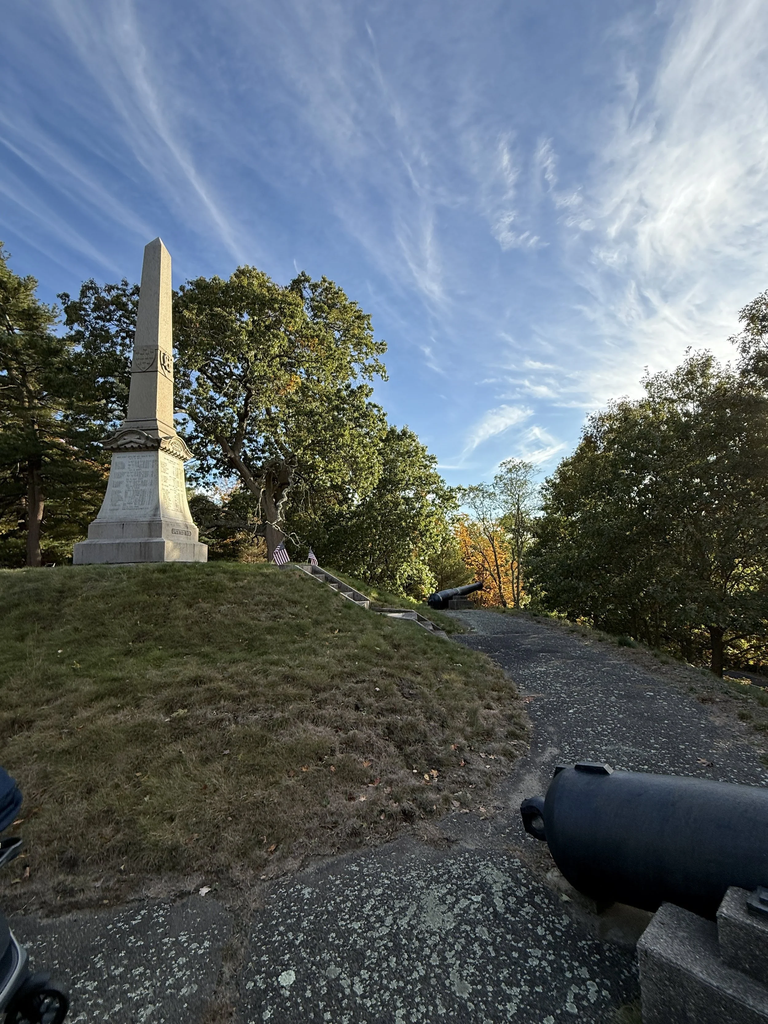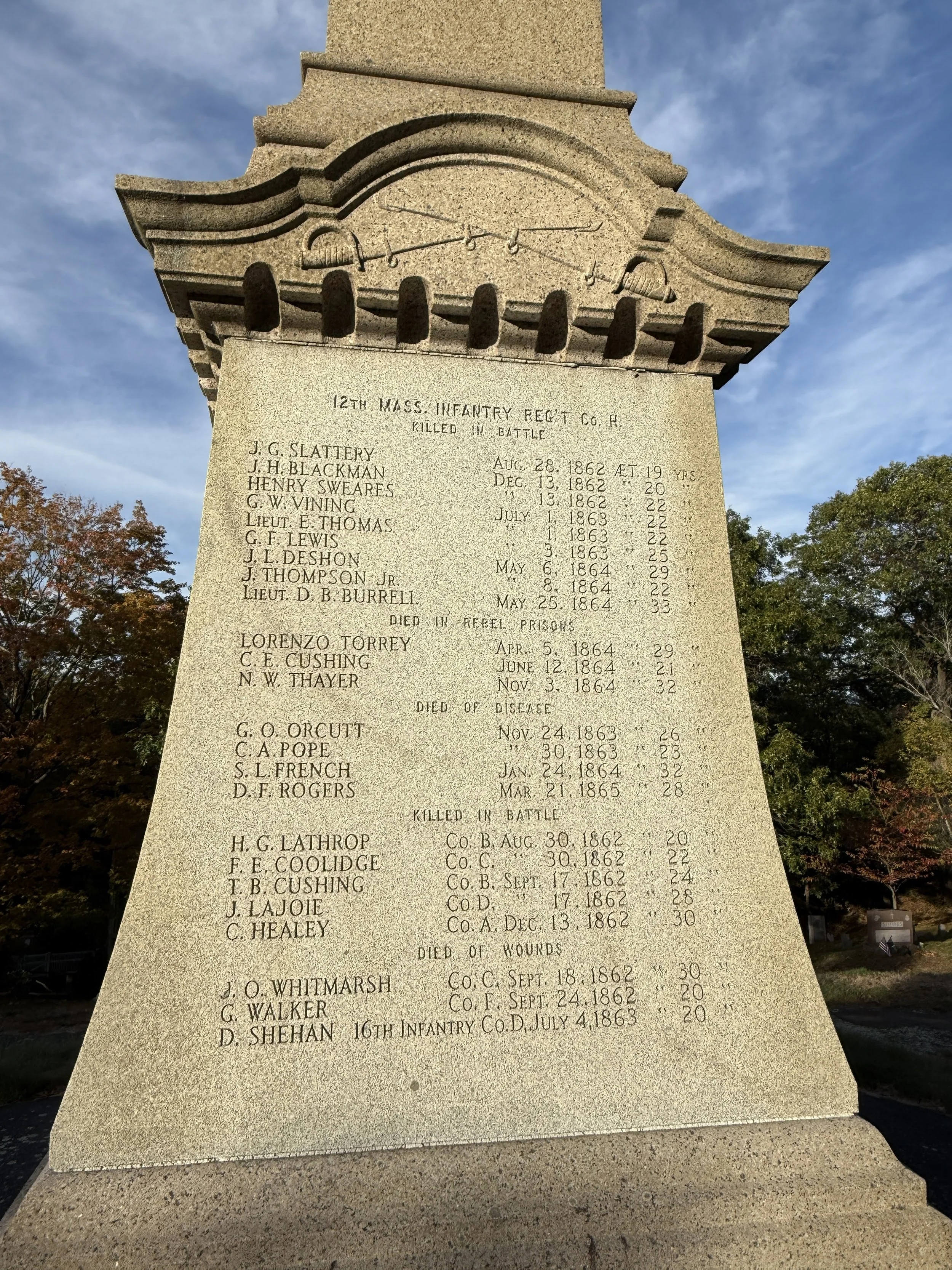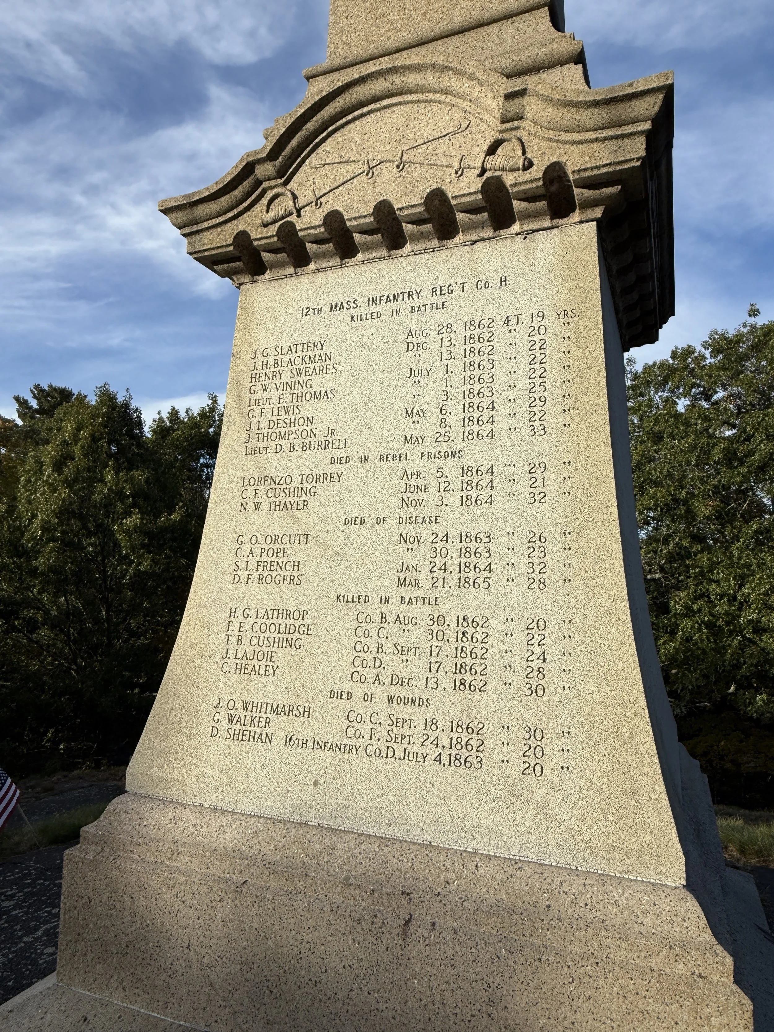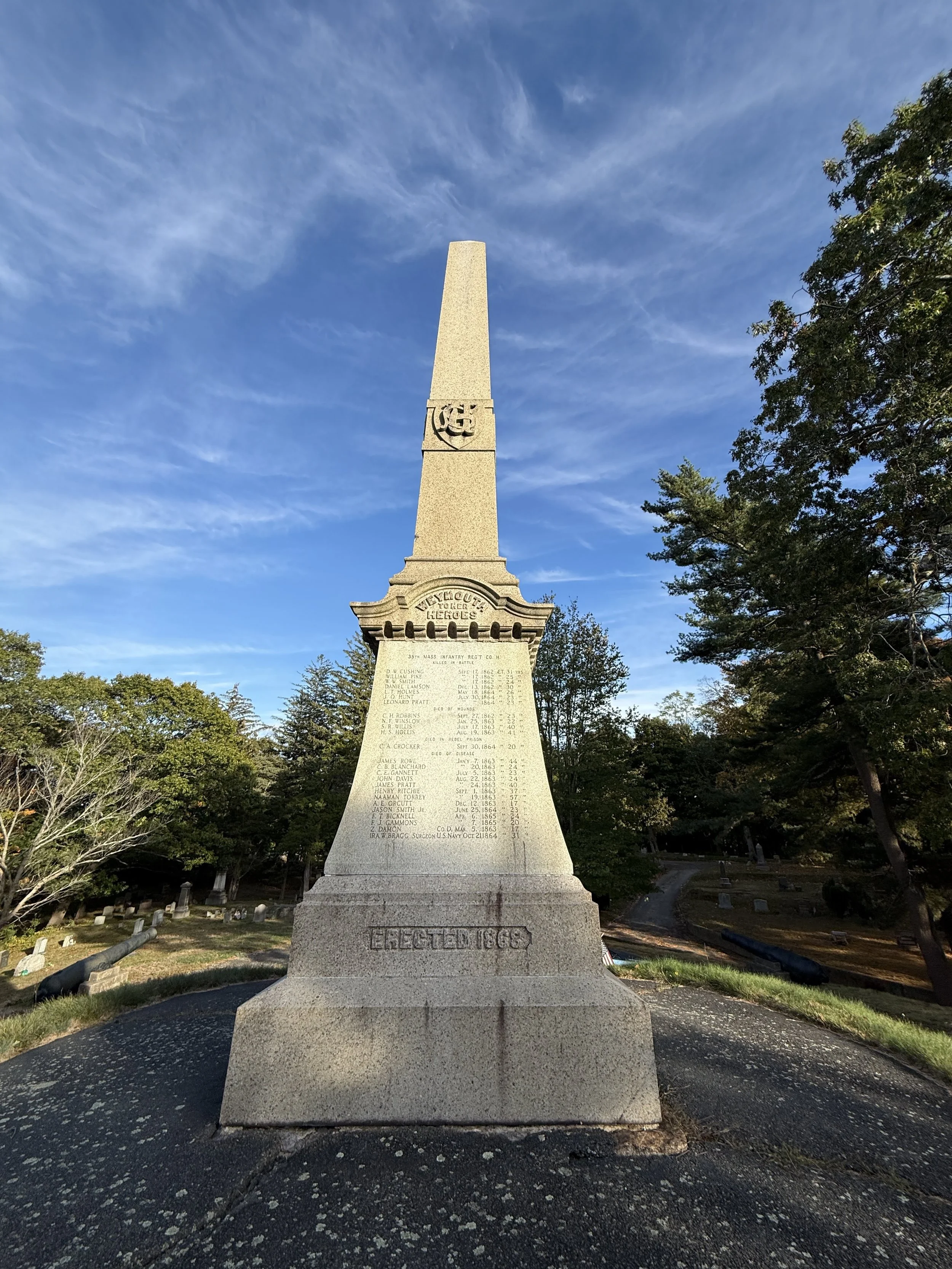 Four US Navy 32-Pounders of 51 Hundredweight surround a Monument dedicated to the Soldiers and Sailors of Weymouth, Massachusetts who died during the American Civil War. The monument was dedicated in 1868 and lists each man by his unit and the circumstances of his death. The fearsome toll taken by disease during the war can clearly be seen etched in stone. The cannons were likely placed later in the 19th century.