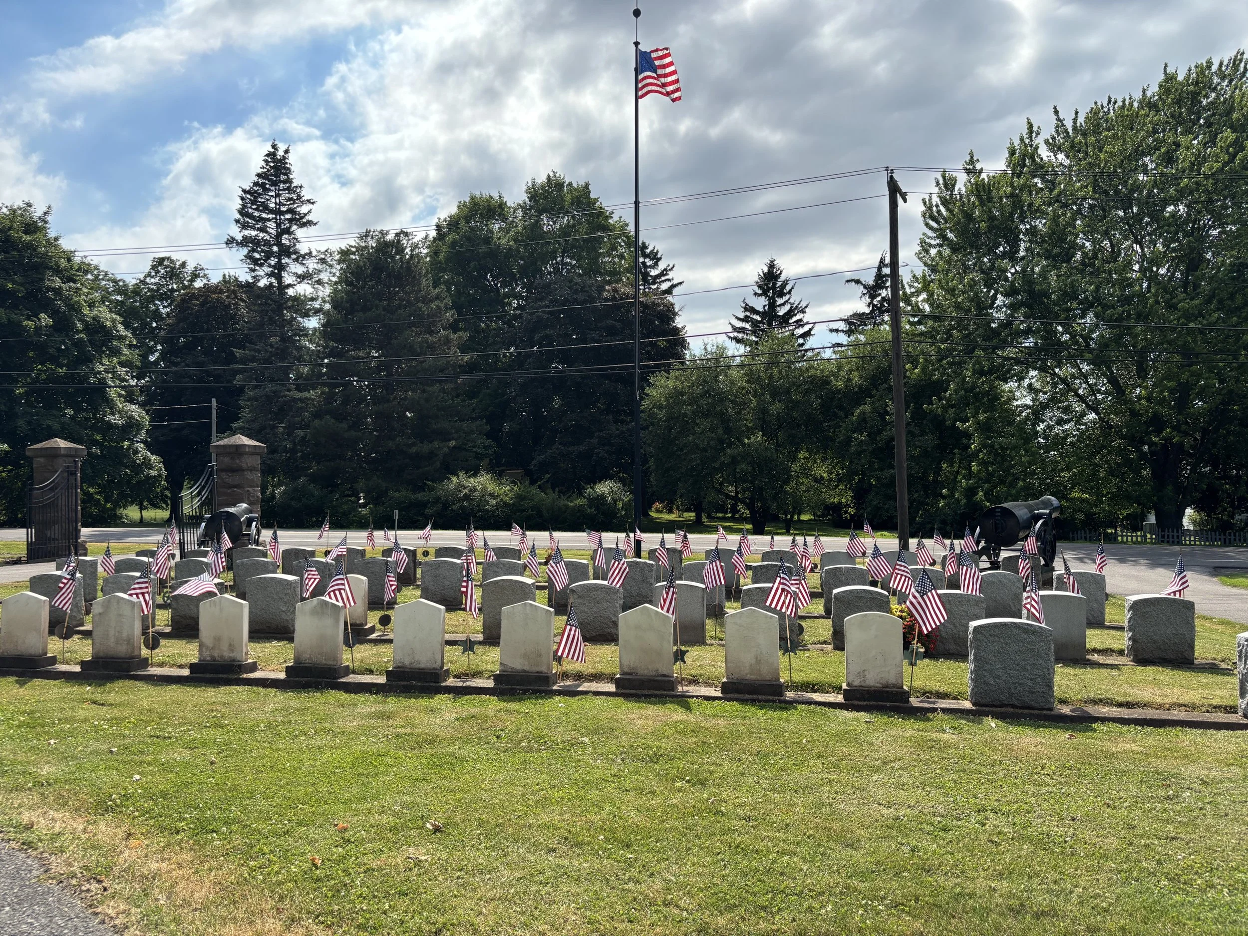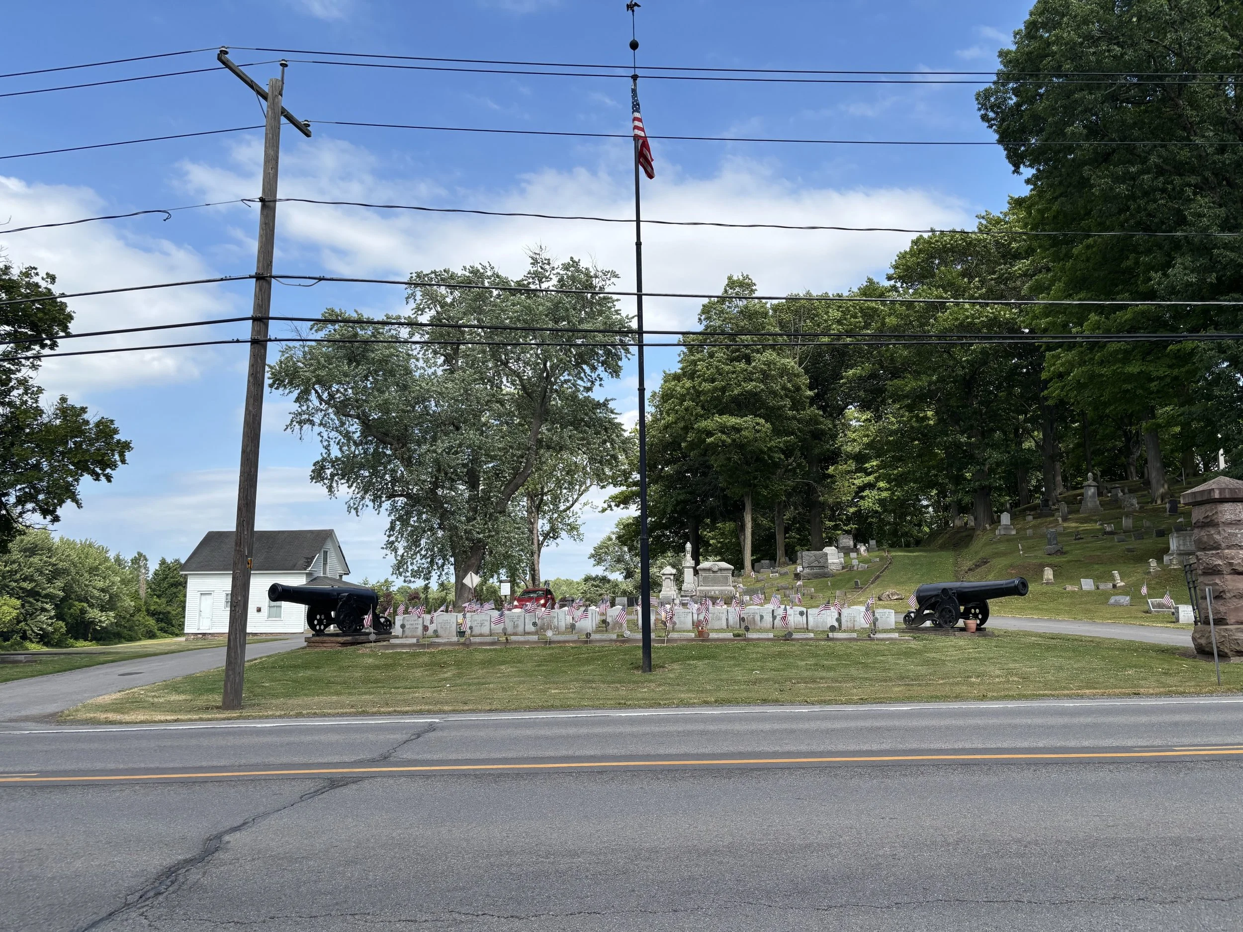At the time that the photographs were taken - summer 2025 - the cannons and the nearby graves of veterans had been decorated for the Fourth of July with United States flags. Many thanks to the volunteers and/or staff who watch over these graves and the cannons which guard them.