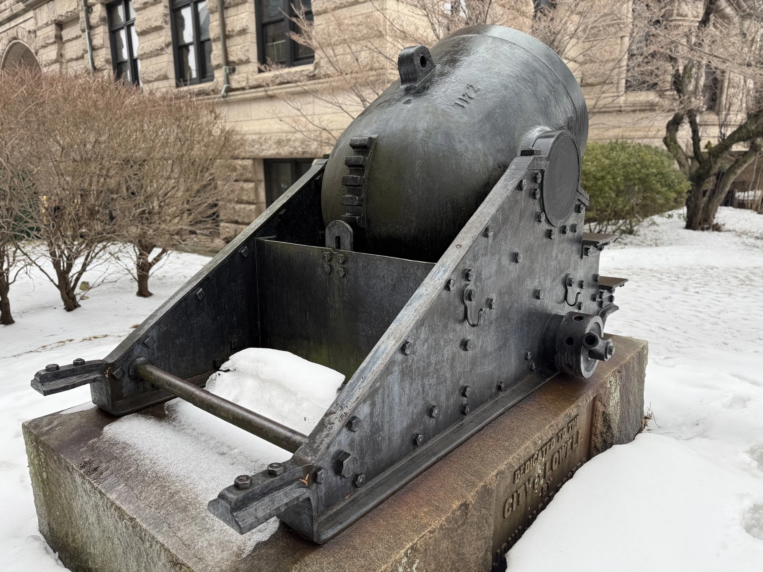A US Navy 13-Inch Mortar, Pattern 1861, is displayed in Lowell, Massachusetts. Many thanks to friend-of-the-page James Murray for taking and sending these photos!