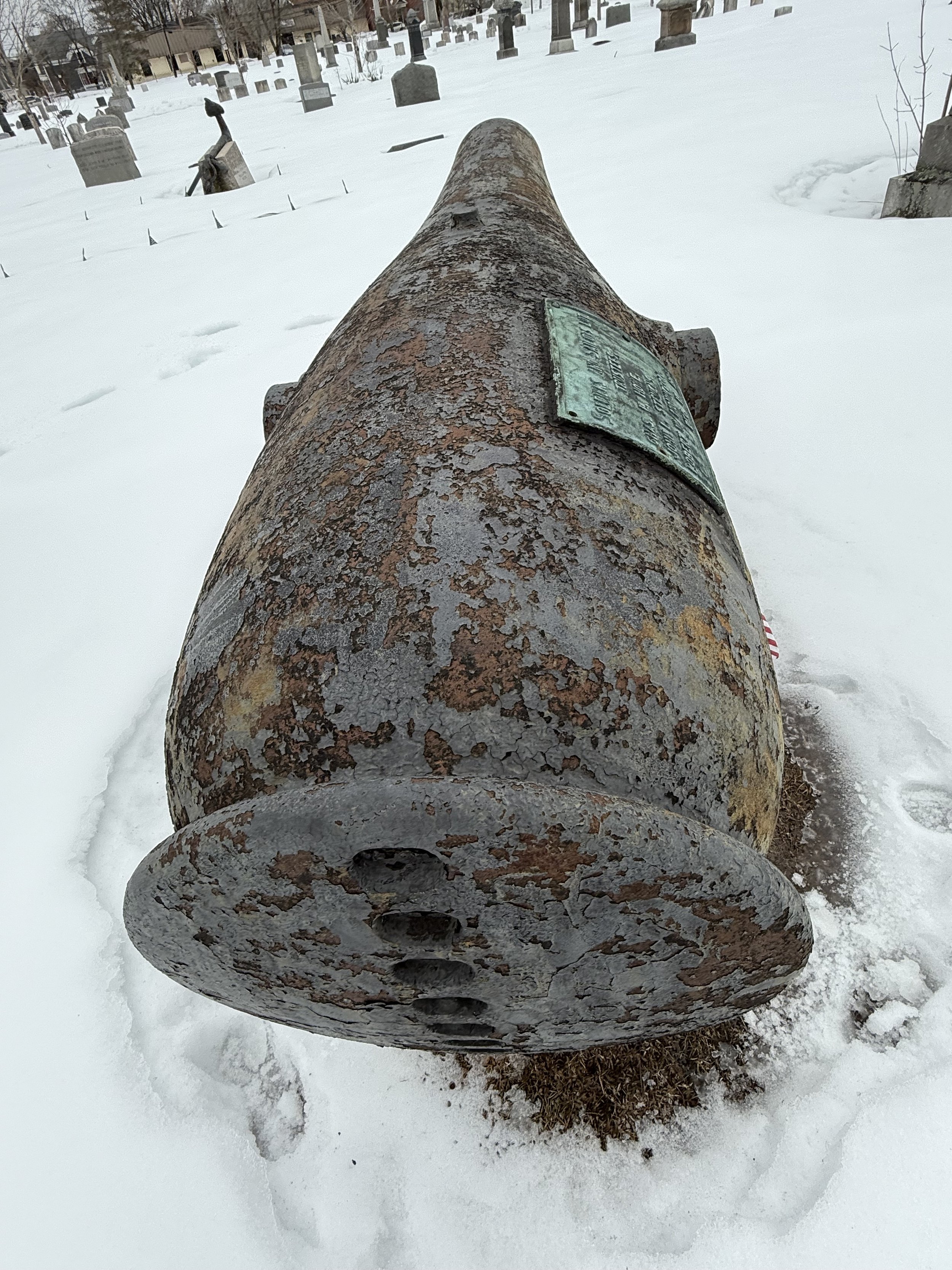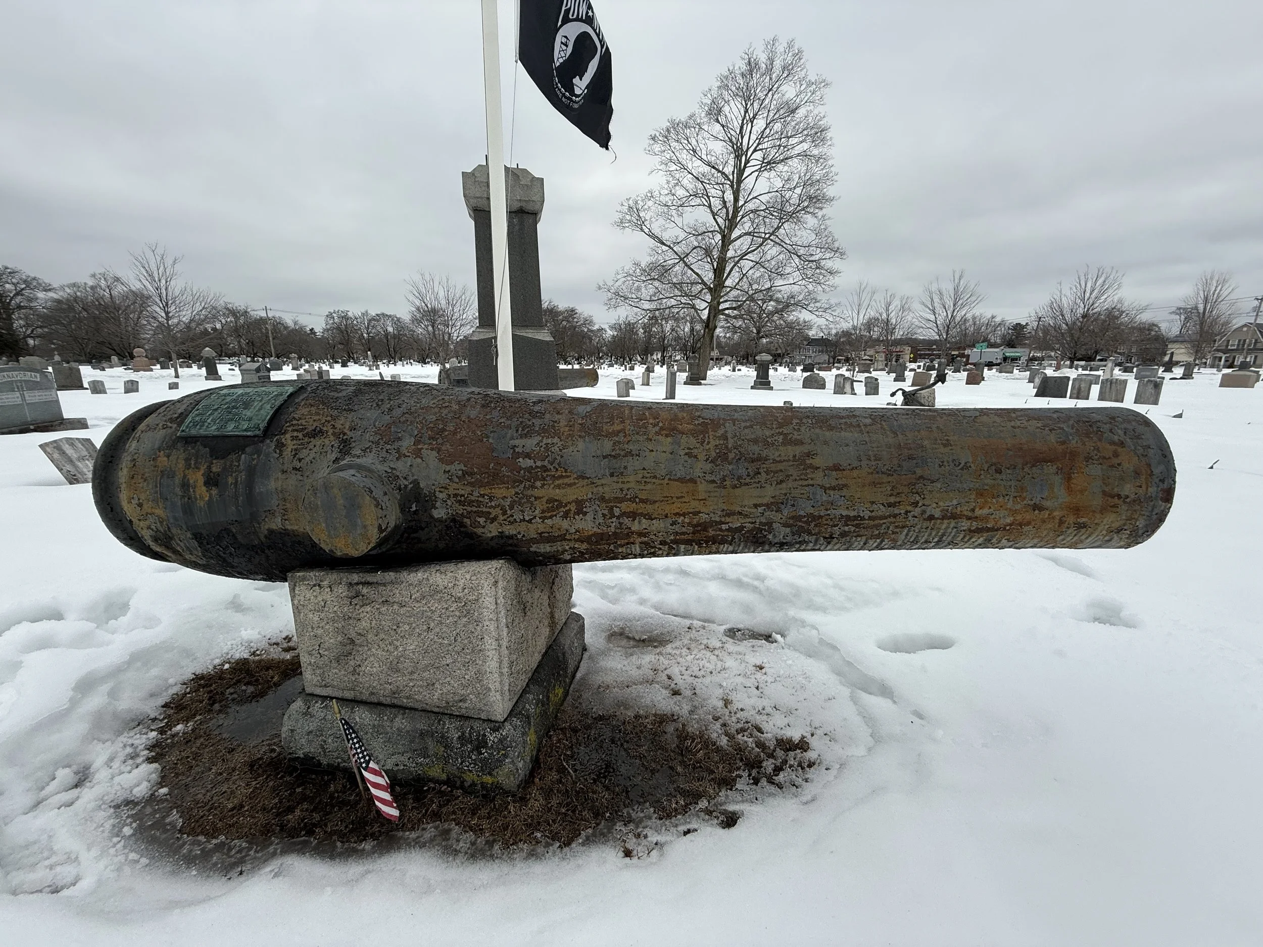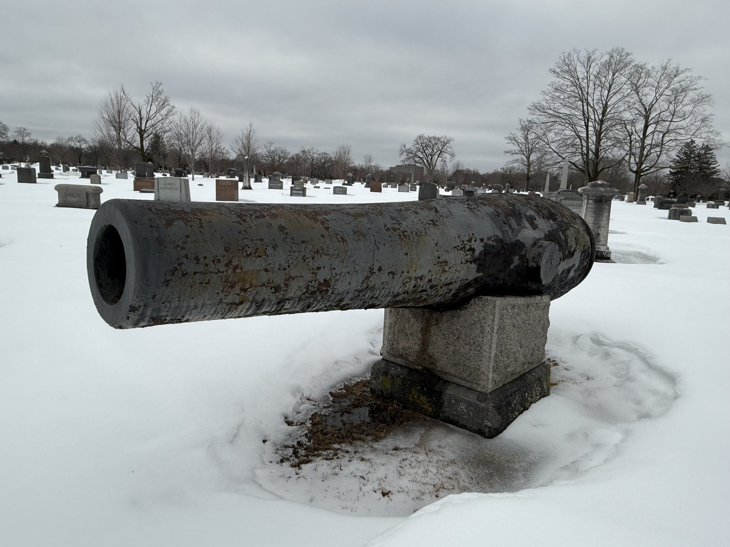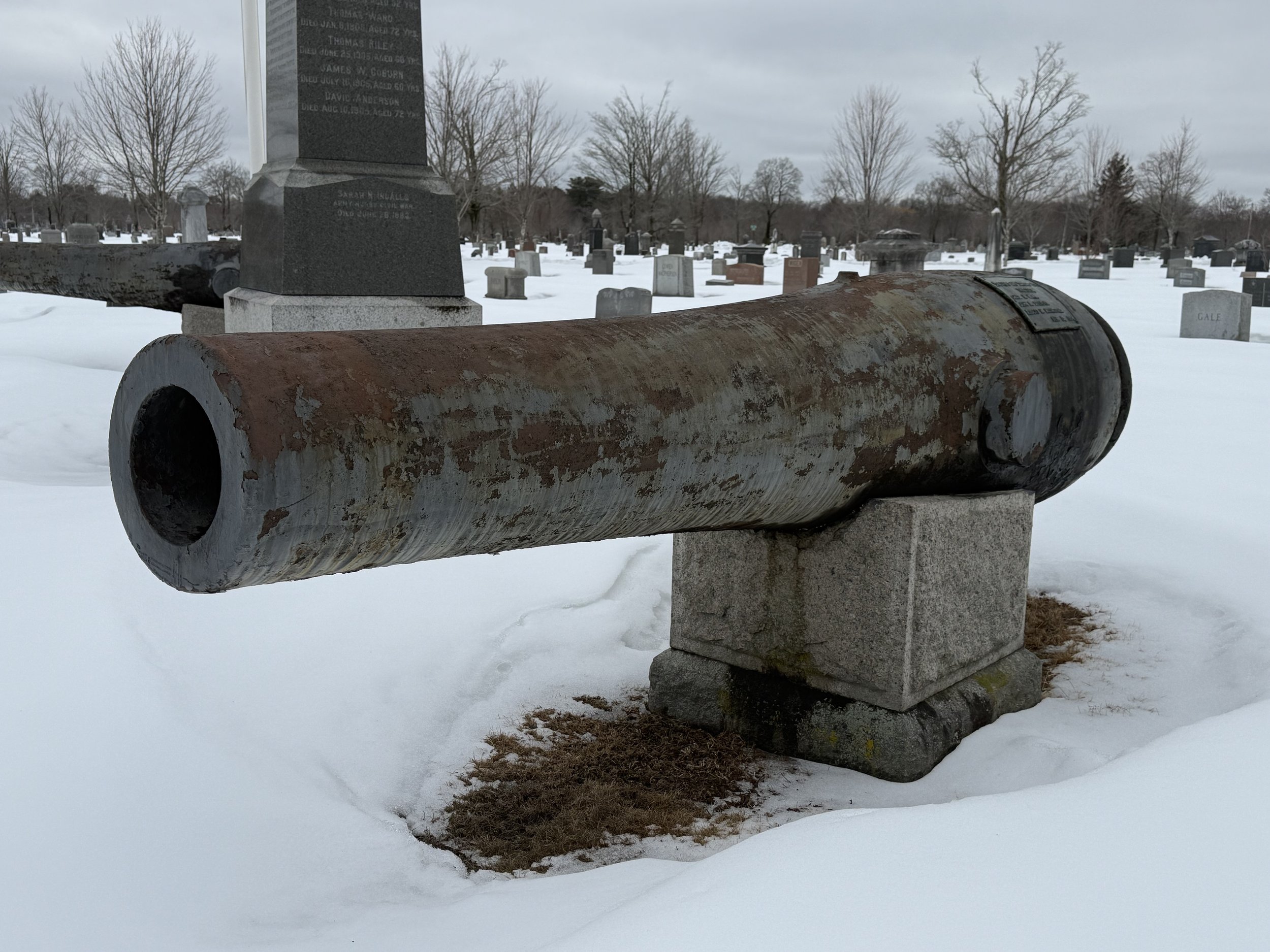 Two US Army 10-Inch Rodmans are displayed at Edson Cemetery in Lowell, Massachusetts