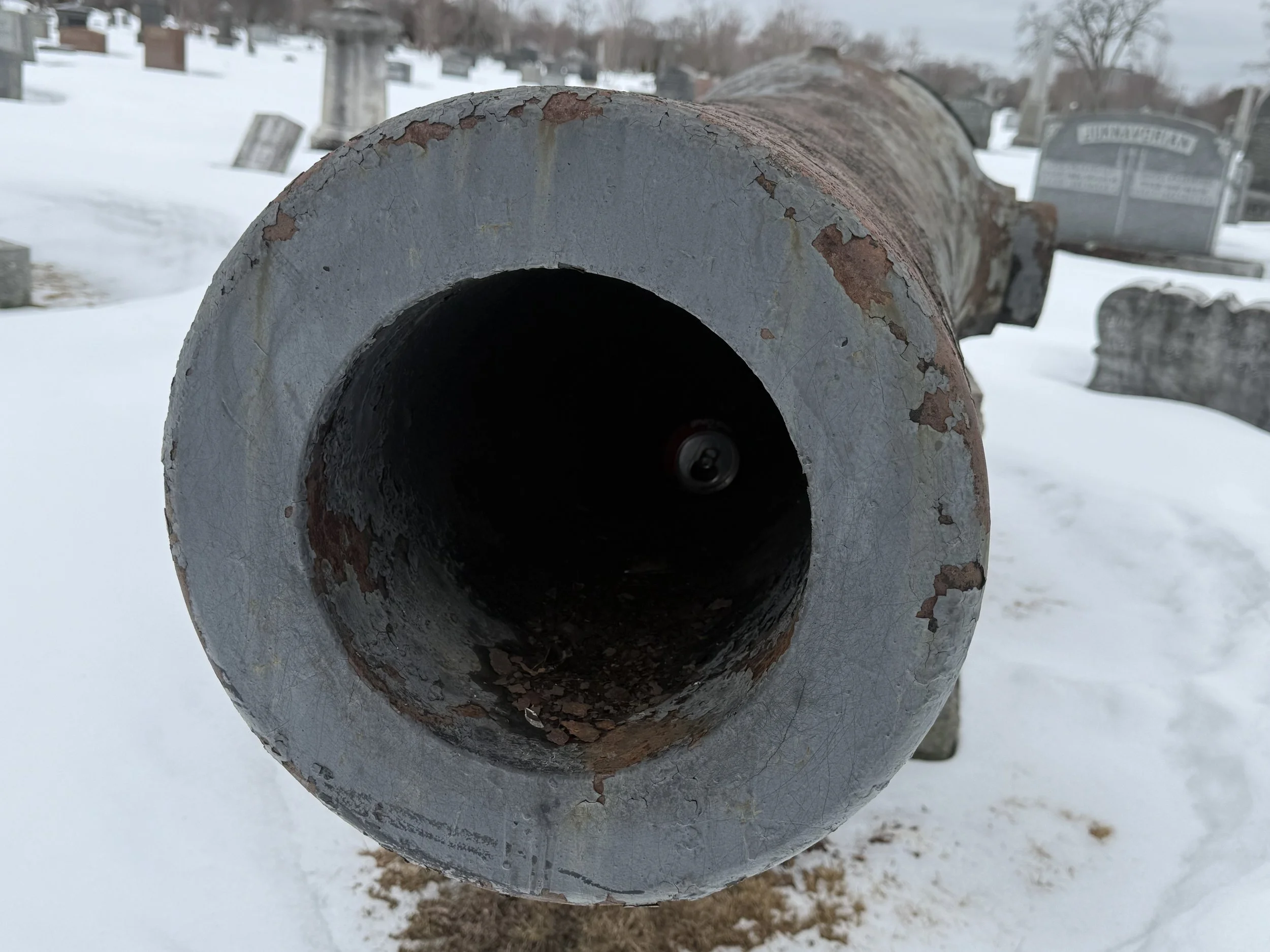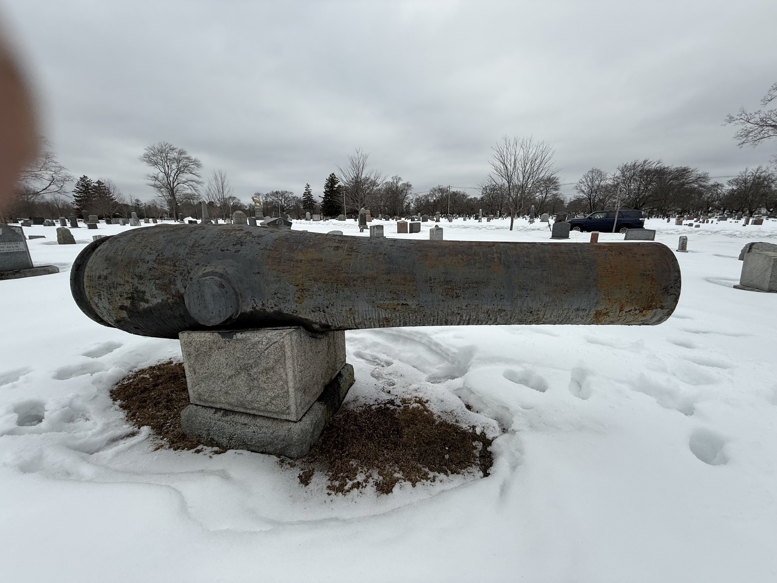 Two US Army 10-Inch Rodmans are displayed at Edson Cemetery in Lowell, Massachusetts. They are displayed near a monument to veterans. Unfortunately, they are in a rather poor state at the moment.
