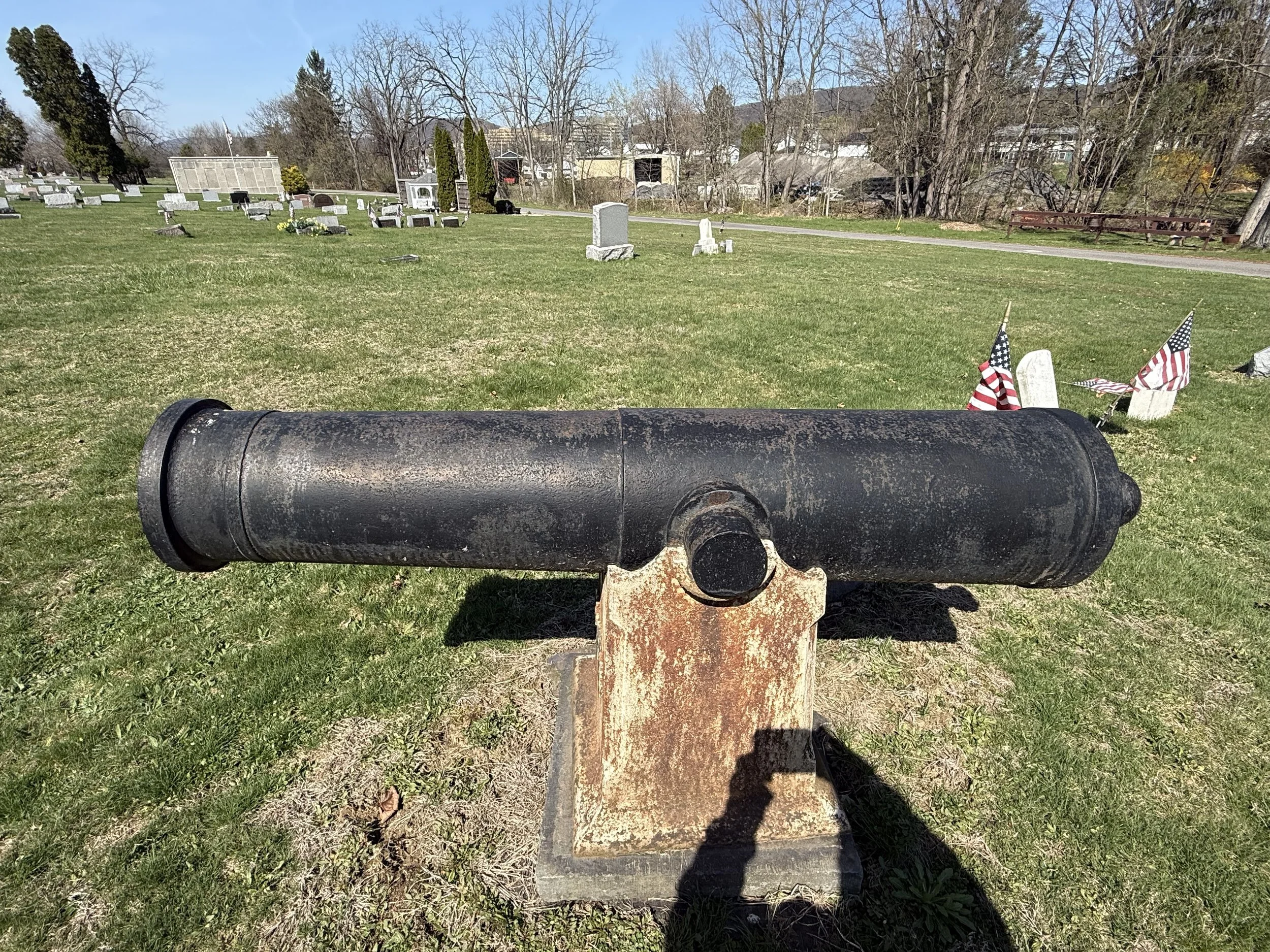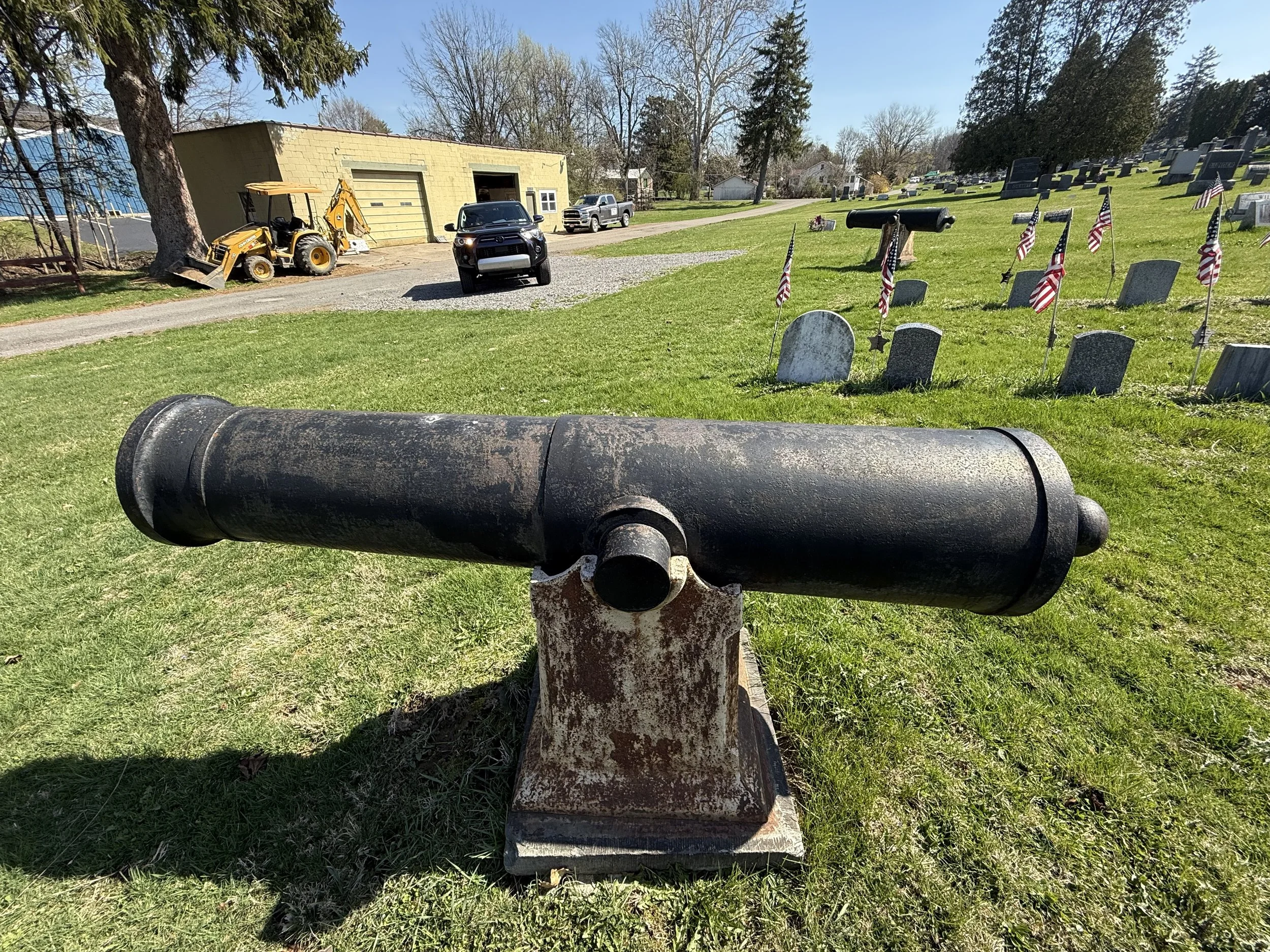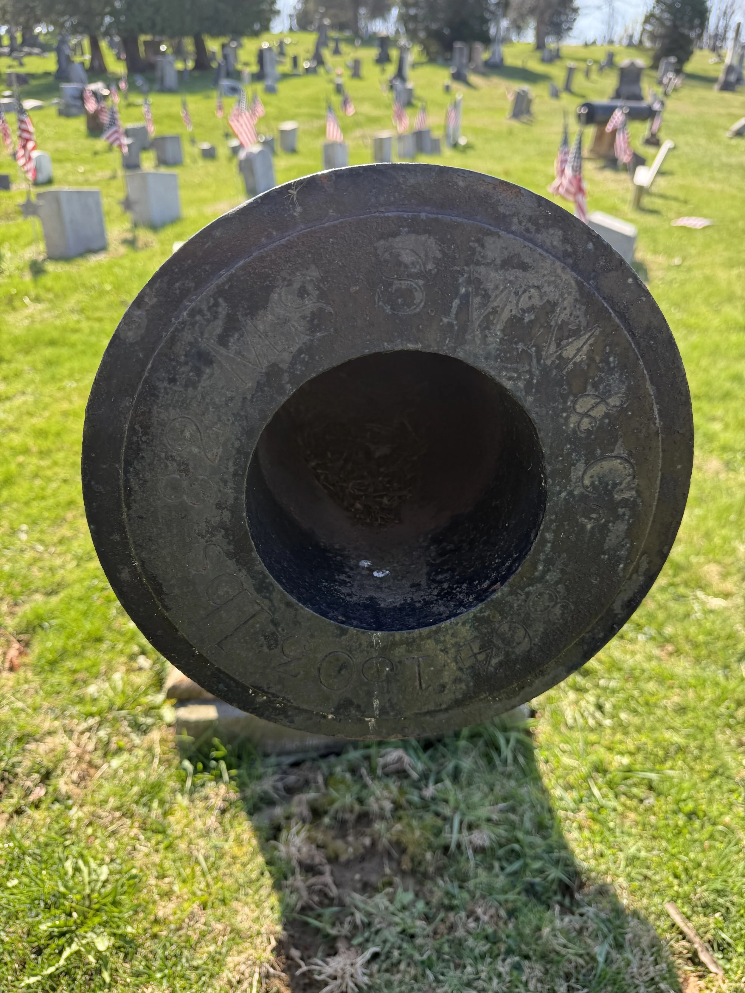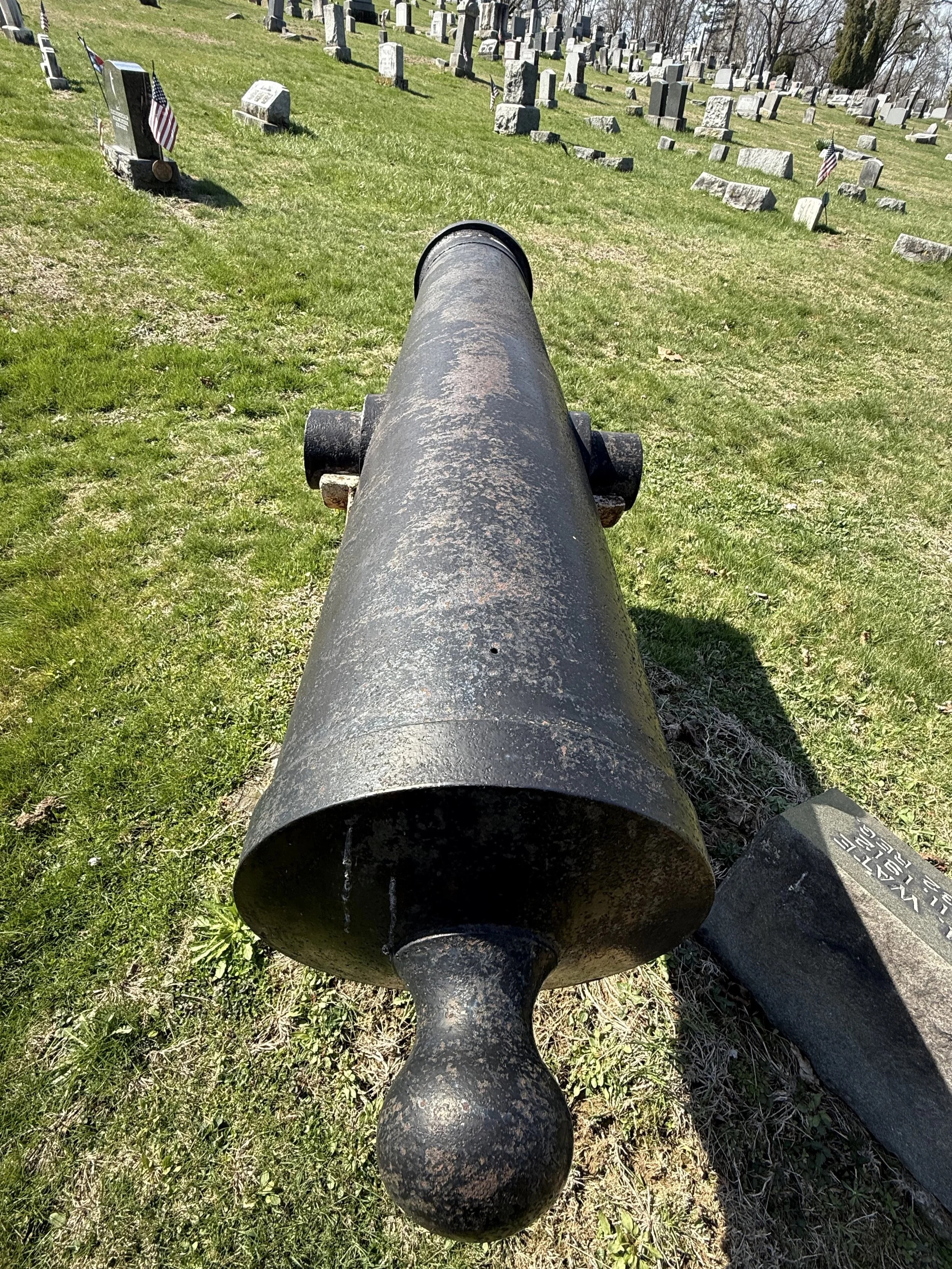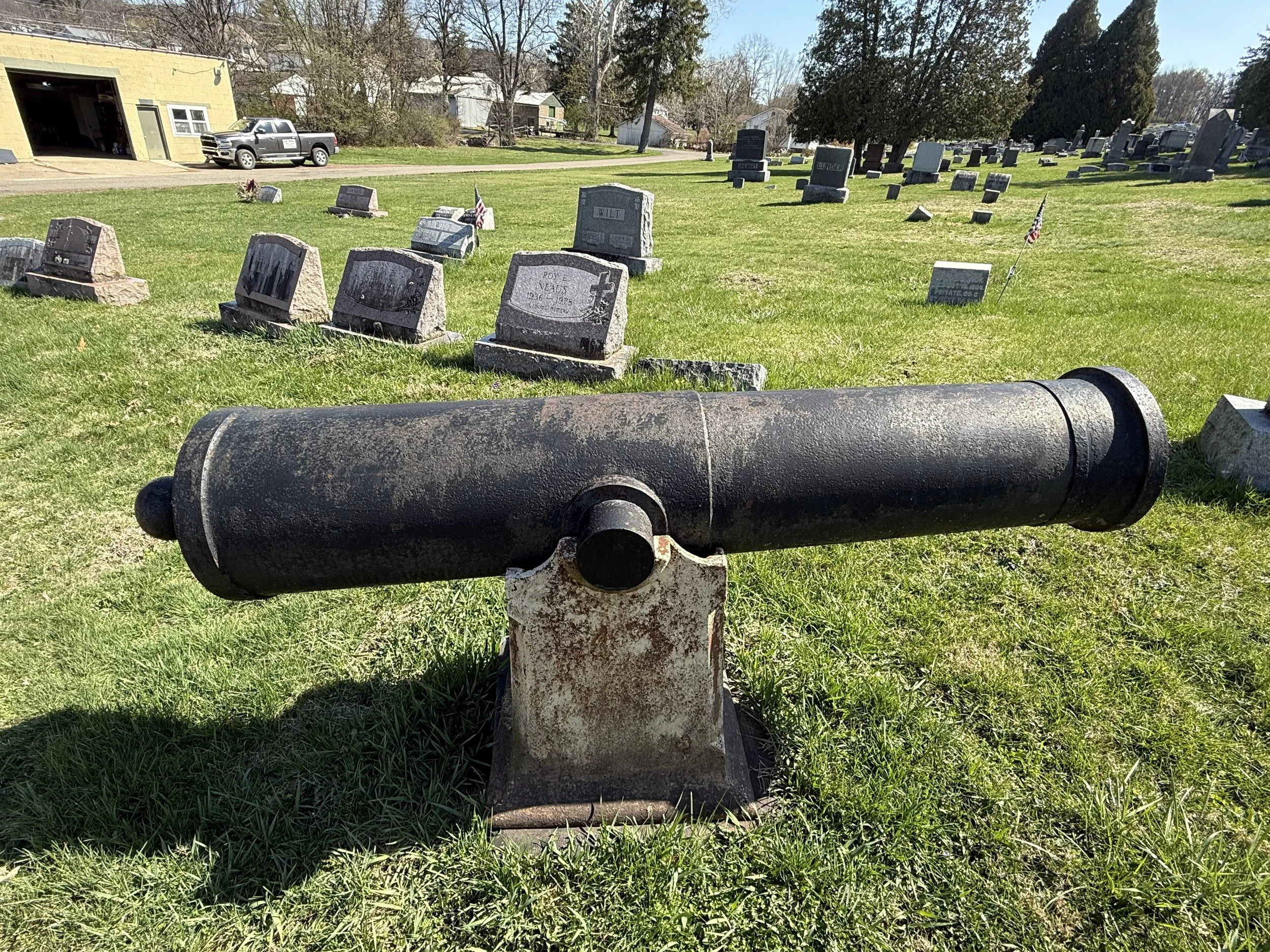 Four US Army 24-Pounder Flank Howitzers are displayed around a section of Veterans' graves at the Oddfellows Cemetery in Danville, Pennsylvania. Many thanks to friend-of-the-page James Murray for these photos!