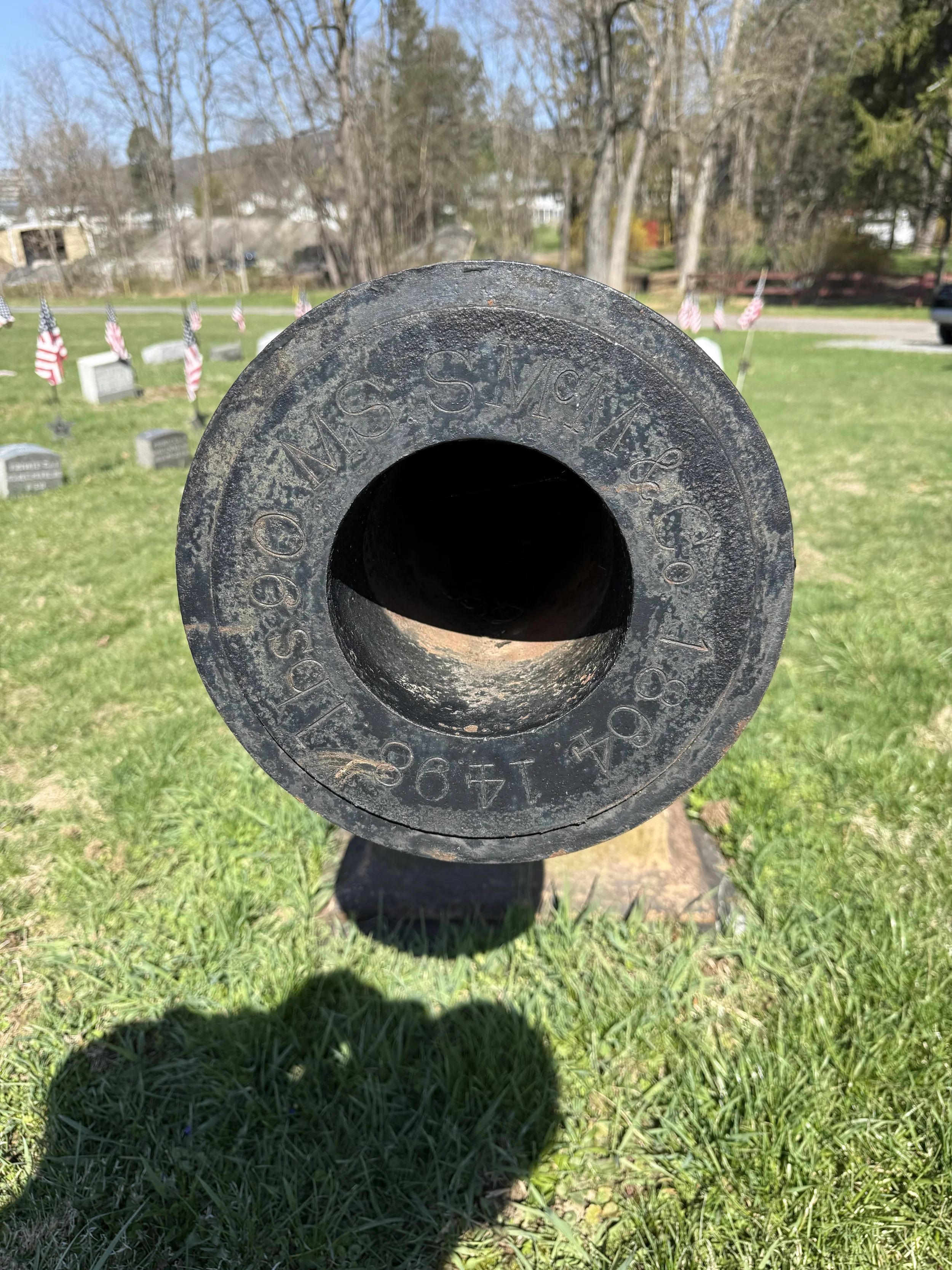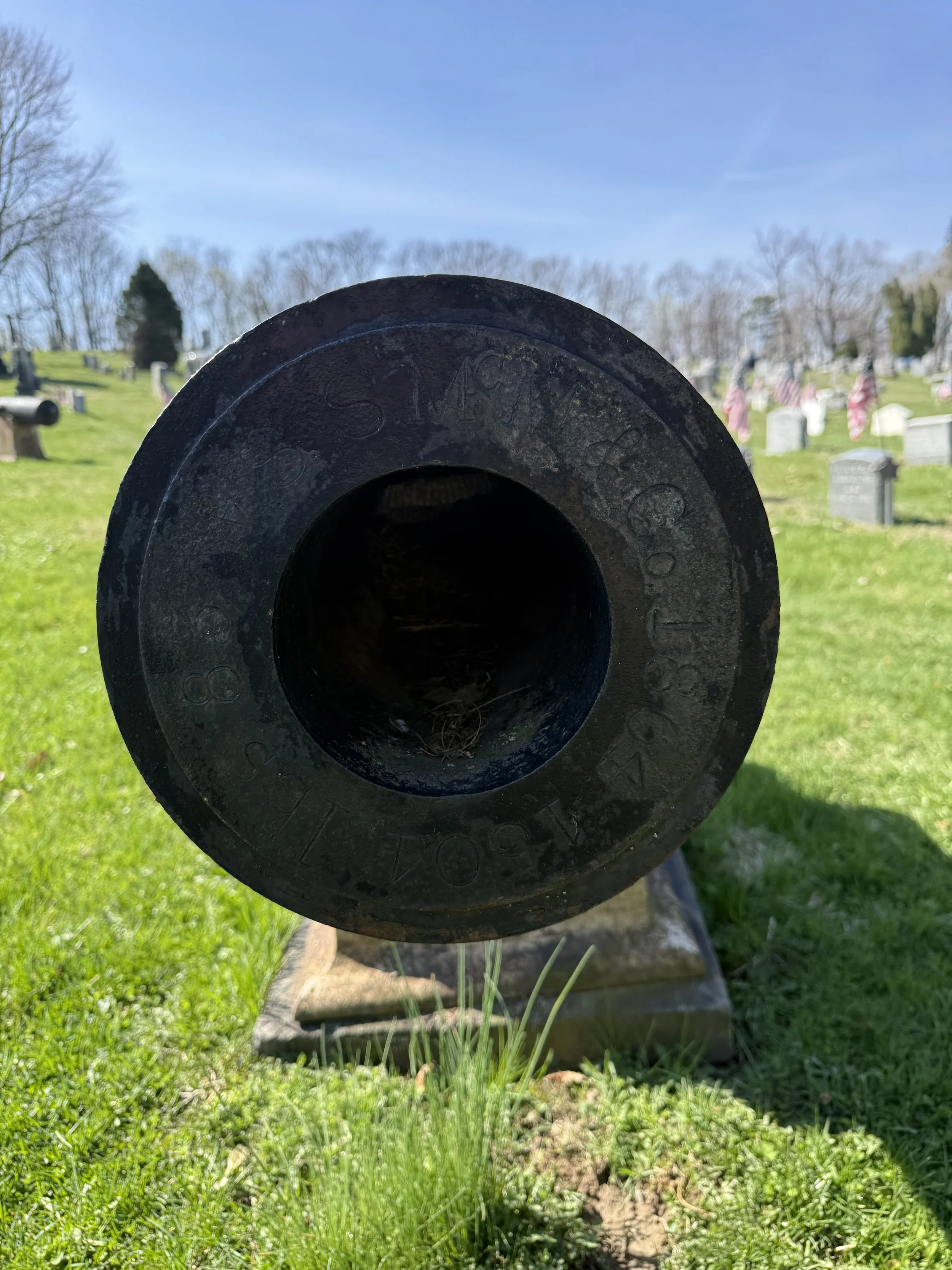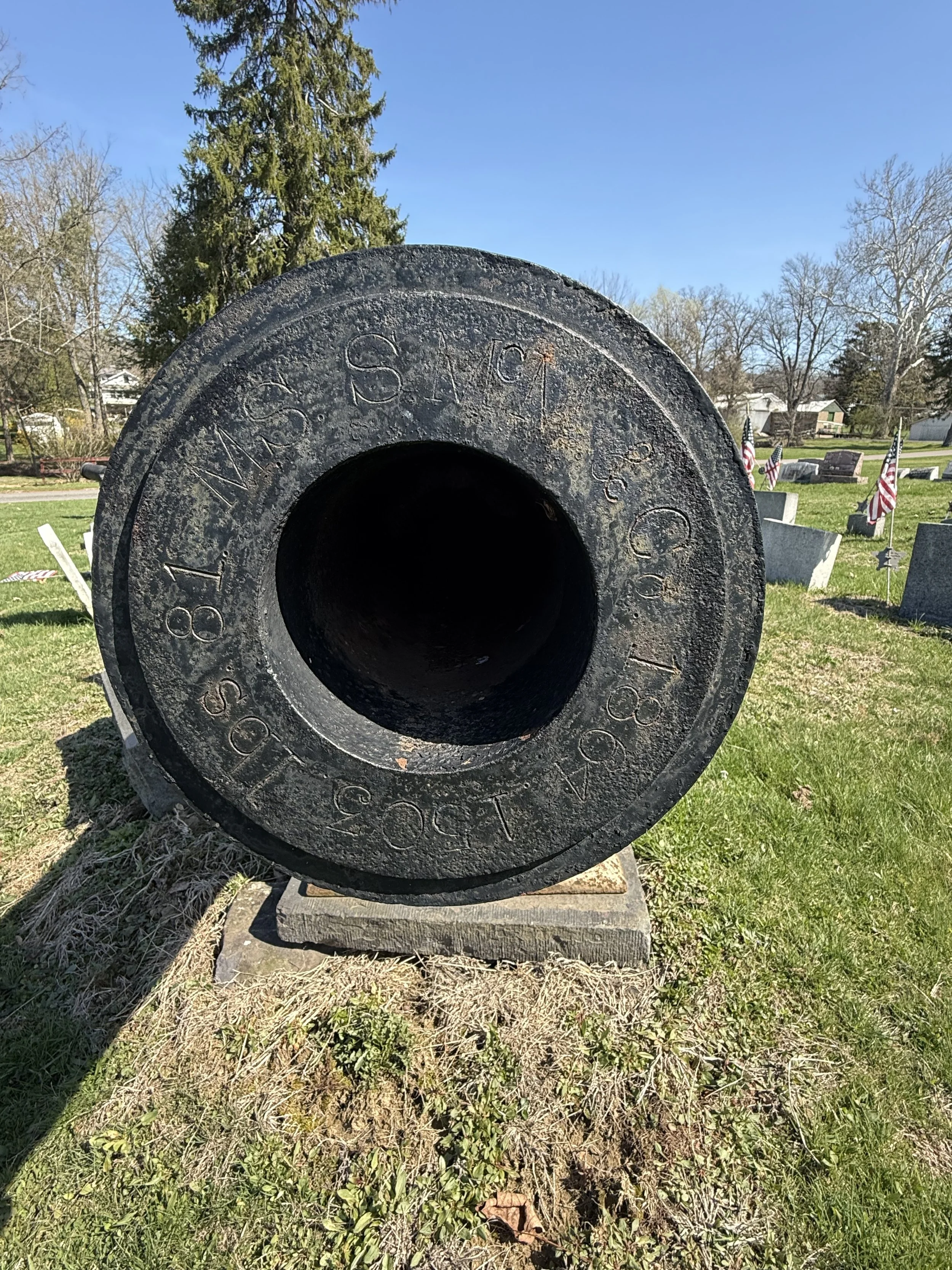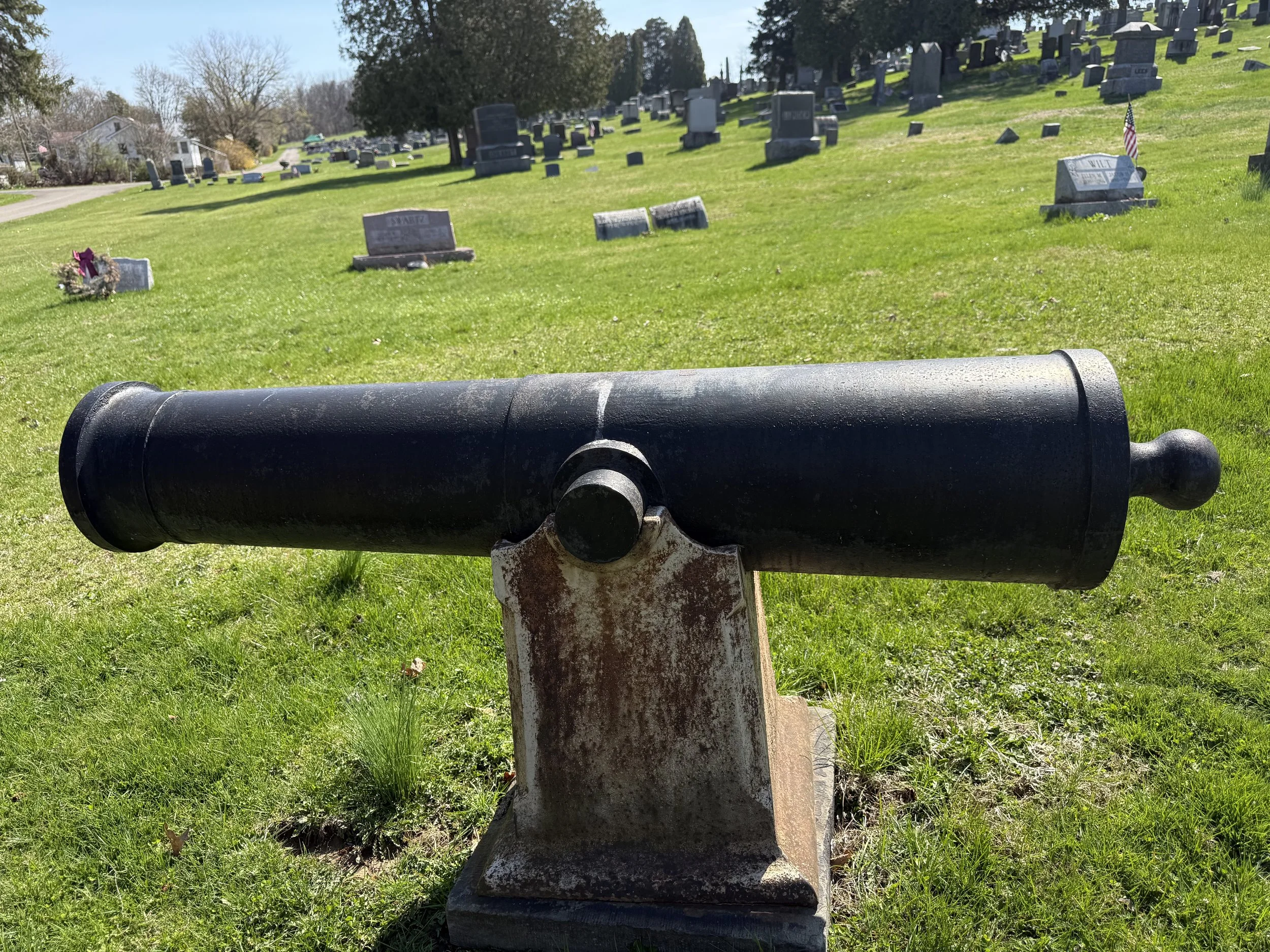 Four US Army 24-Pounder Flank Howitzers are displayed around a section of Veterans' graves at the Oddfellows Cemetery in Danville, Pennsylvania. Many thanks to friend-of-the-page James Murray for these photos!