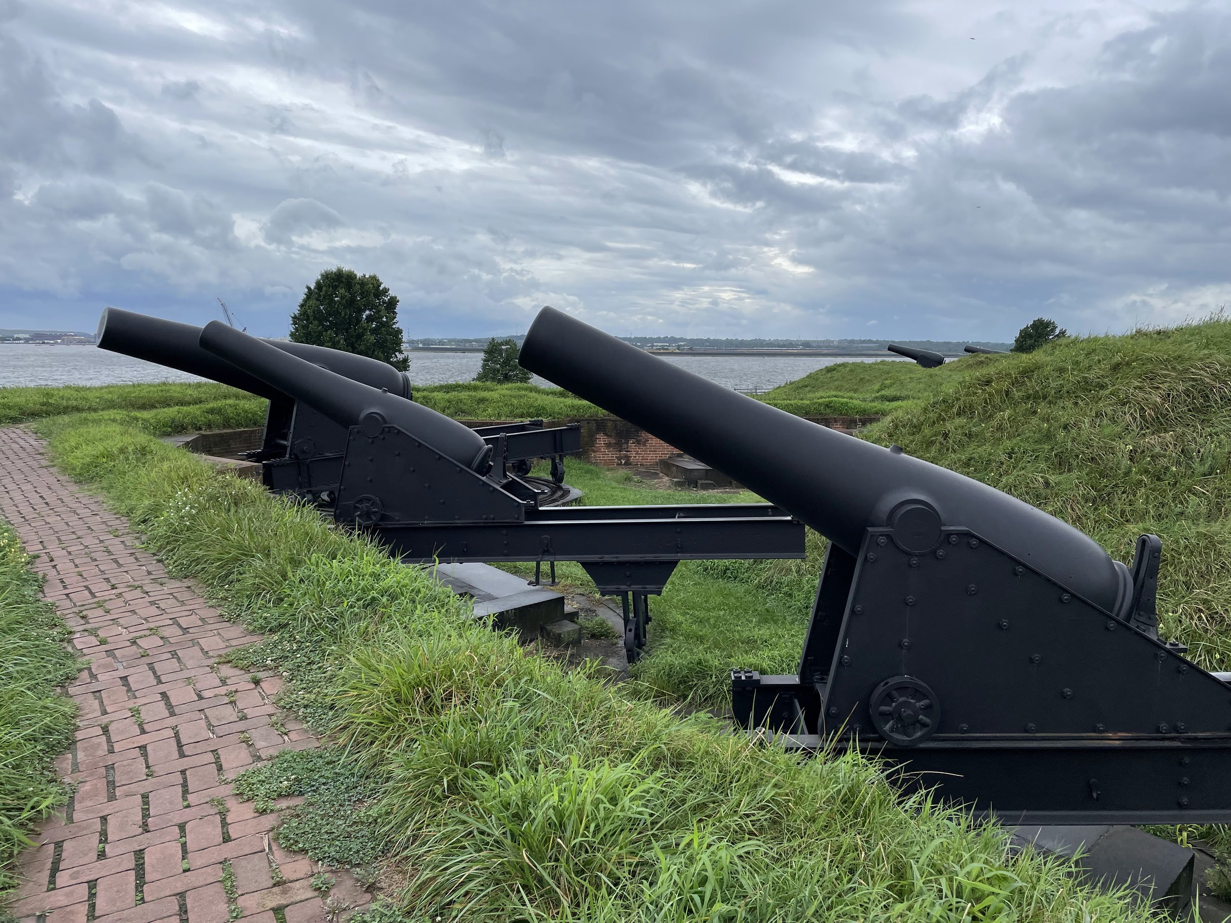 Two 8-Inch Rodmans and a 15-Inch Rodman mounted on original carriages displayed at Fort McHenry in Baltimore, Maryland