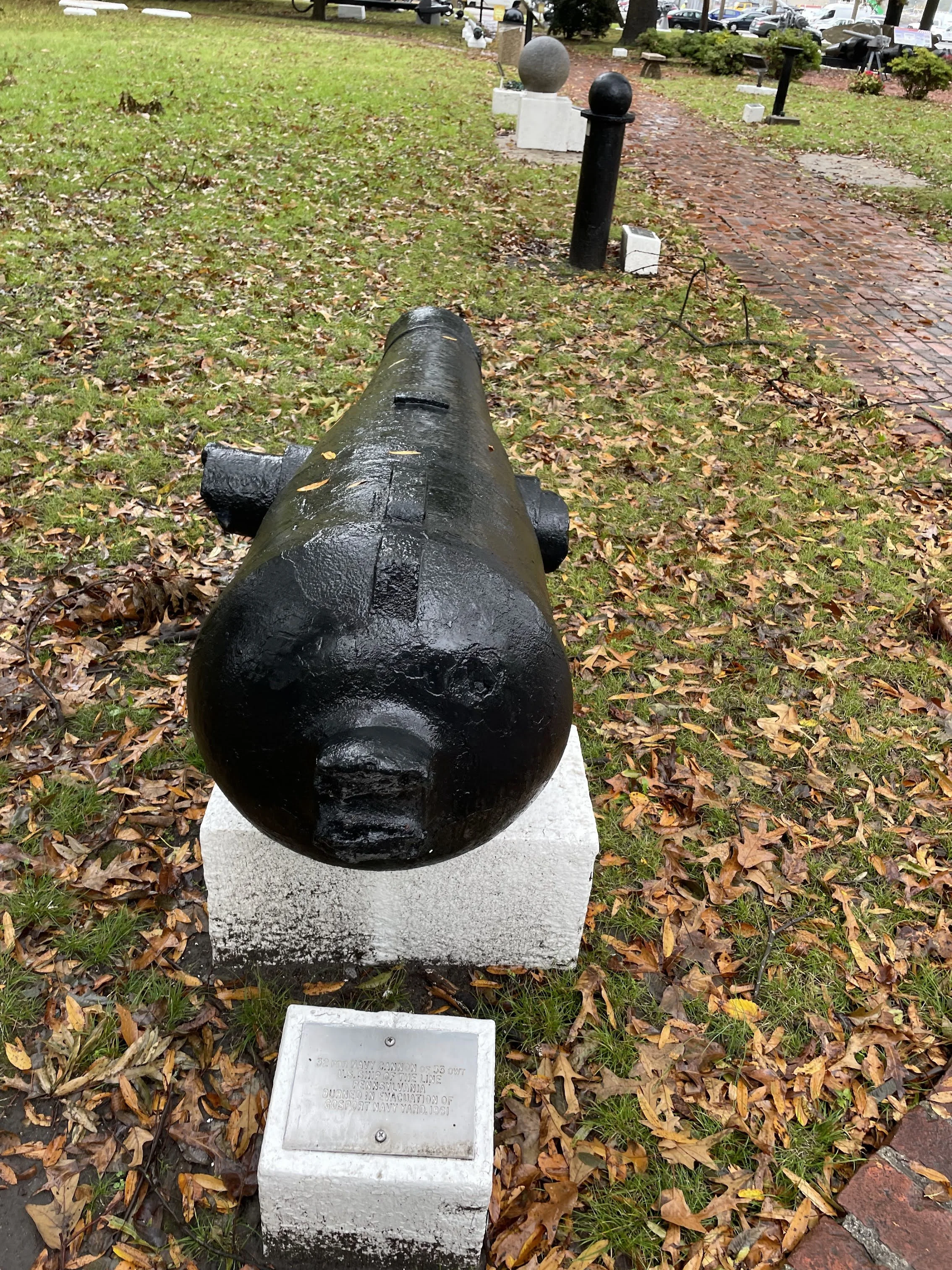 A US Navy 32-Pounder of 32 Hundredweight which was recovered from the wreck of USS Pennsylvania is displayed in Trophy Park in Norfolk Naval Shipyard. According to the research of Wayne Stark, USS Pennsylvania had two 32-Pounders of this type aboard in 1861, Registry Numbers 213 and 214, both of which had been made by Tredegar in 1846. Though the identifying marks on this cannon are no longer visible, it is probably 213 or 214.