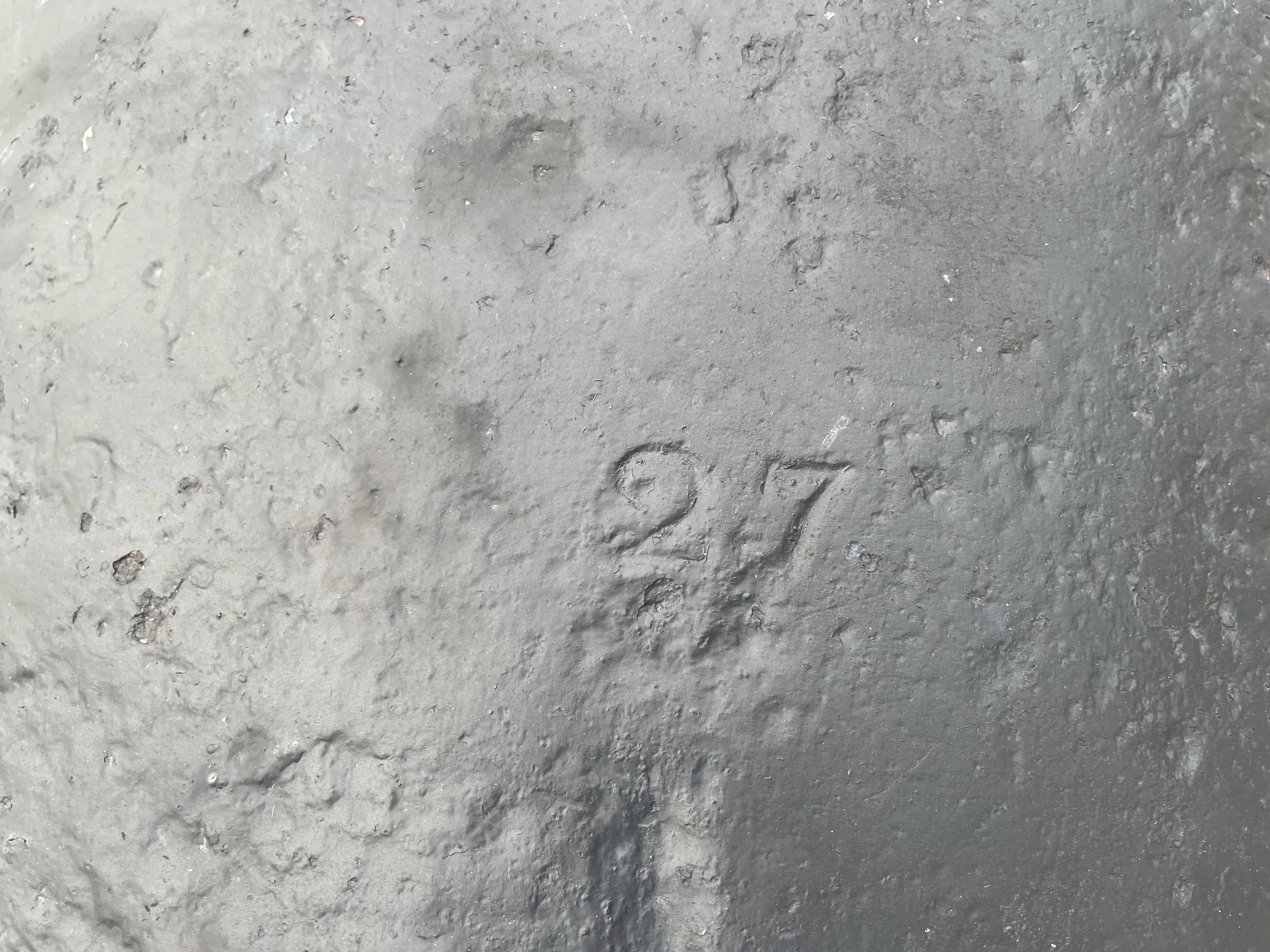 “27 is the final part of the weight stamping “40-3-27” which was previously visible to be recorded in Olmstead, Stark, and Tucker.