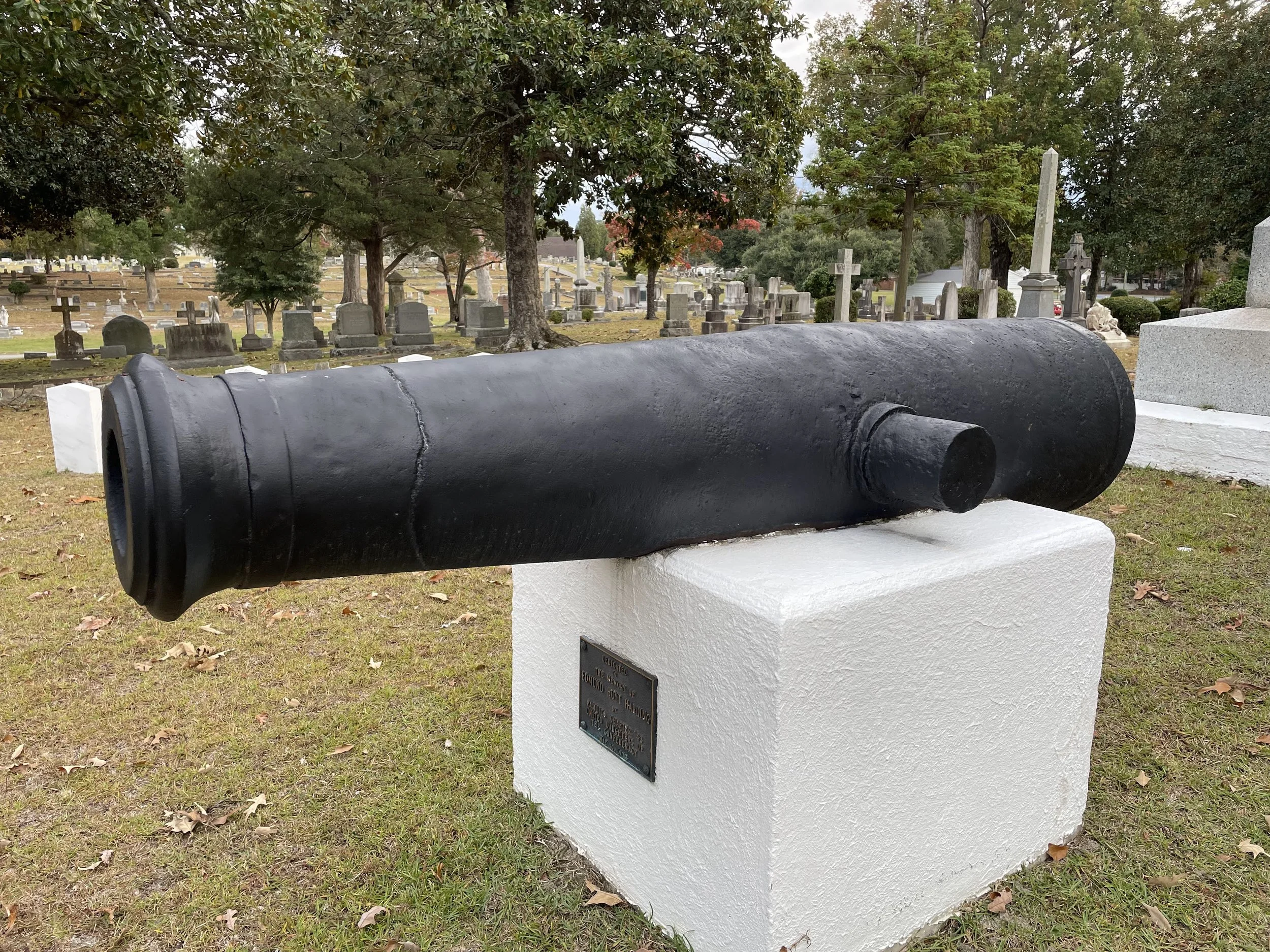 The 32-Pounder is displayed beside the Confederate Monument and near Confederate Graves at Oakdale Cemetery in Washington, North Carolina