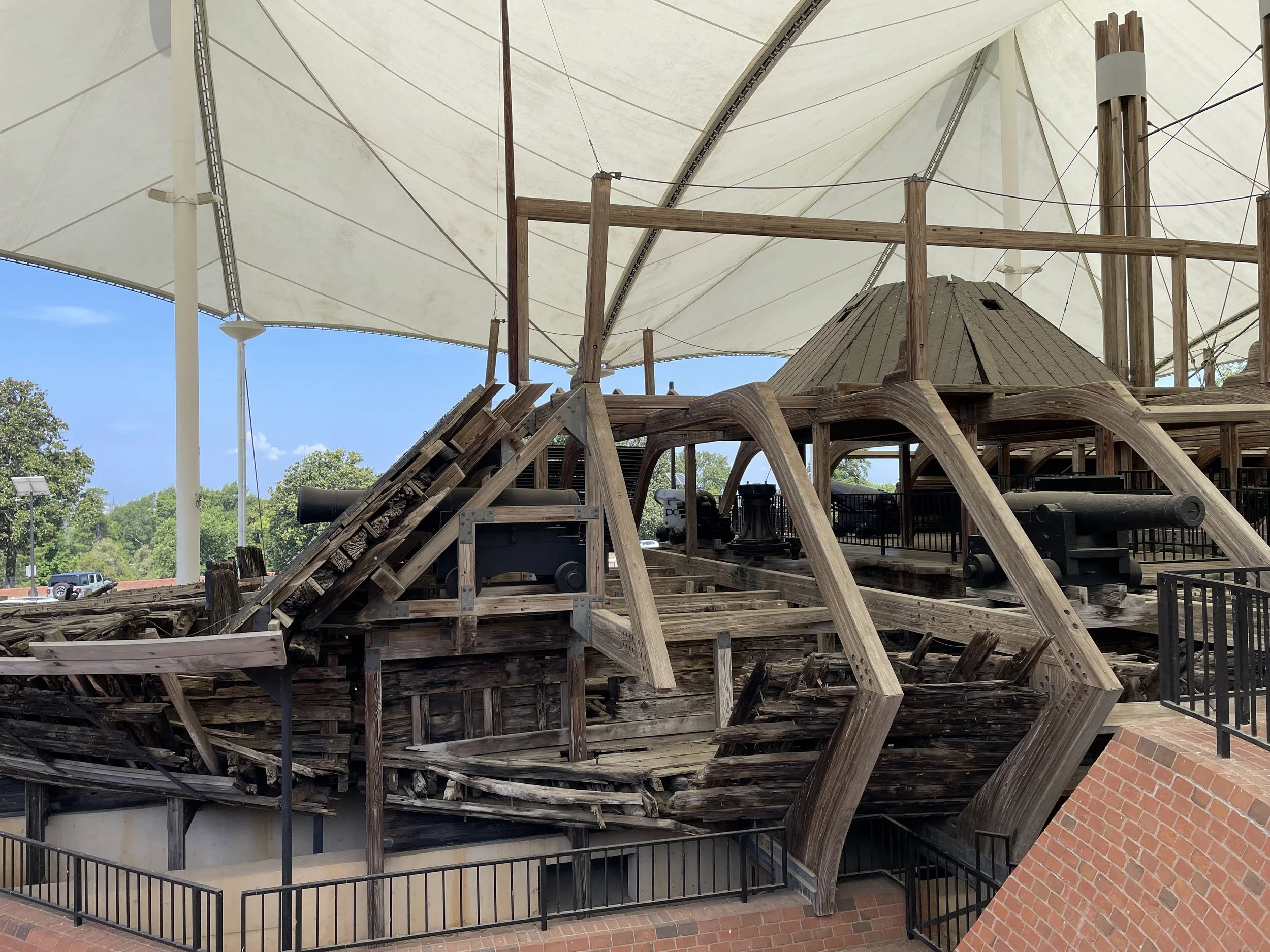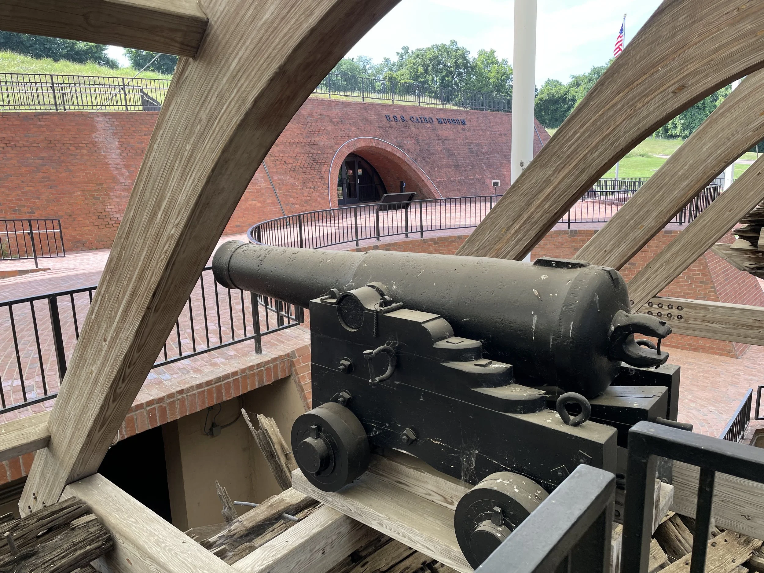 Rarer still than the cannons of USS Cairo are the surviving carriages, one of which is displayed in the adjacent museum. Very few original wooden carriages survive from the Civil War. The example in the museum is displayed with a partial fiberglass barrel.