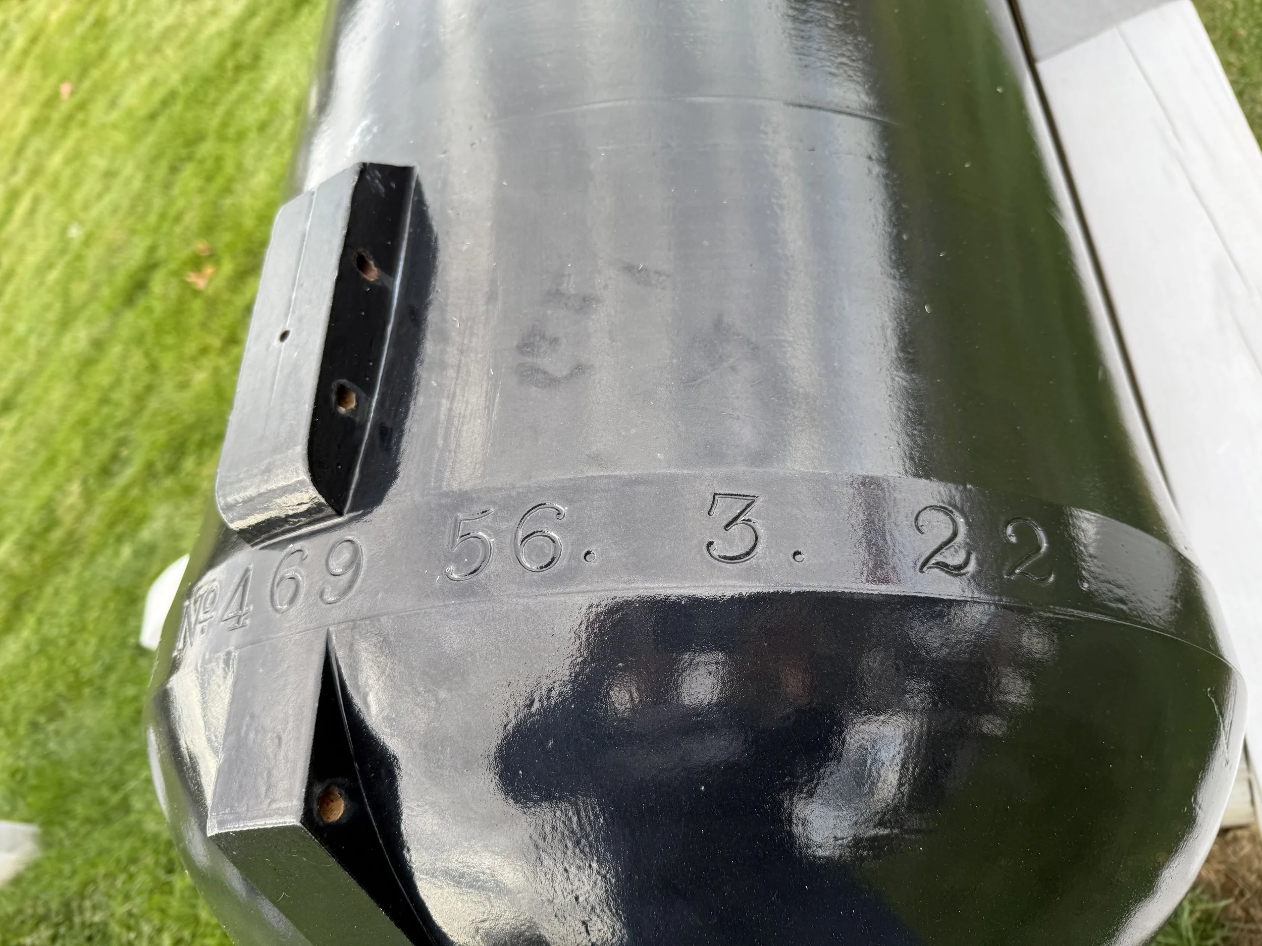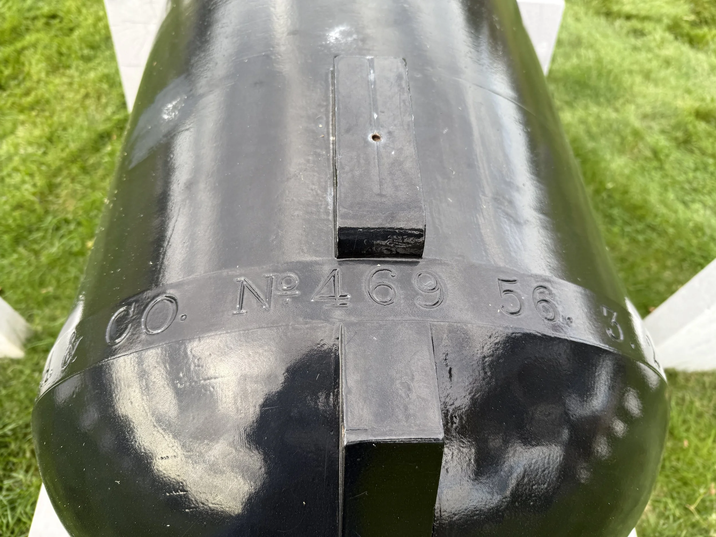 32-Pounder 57cwt Number 469 cast by Cyrus Alger & Co. in 1848. As manufactured it weighed 56-3-22 in hundredweight (6,462 pounds).