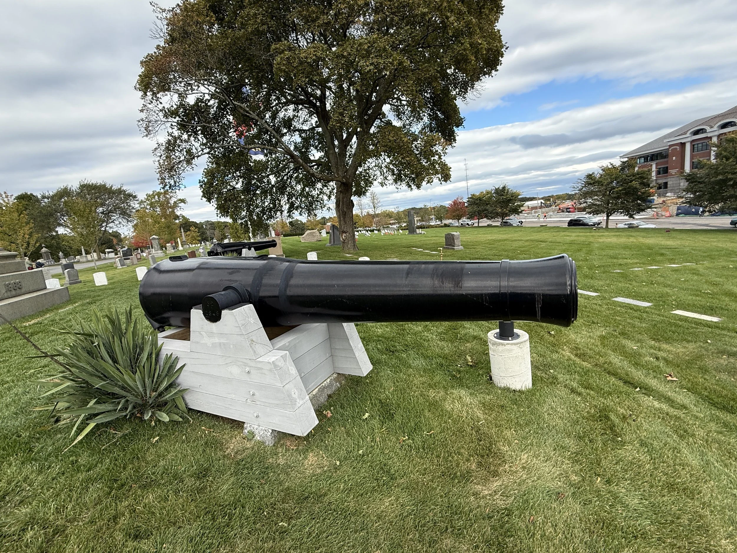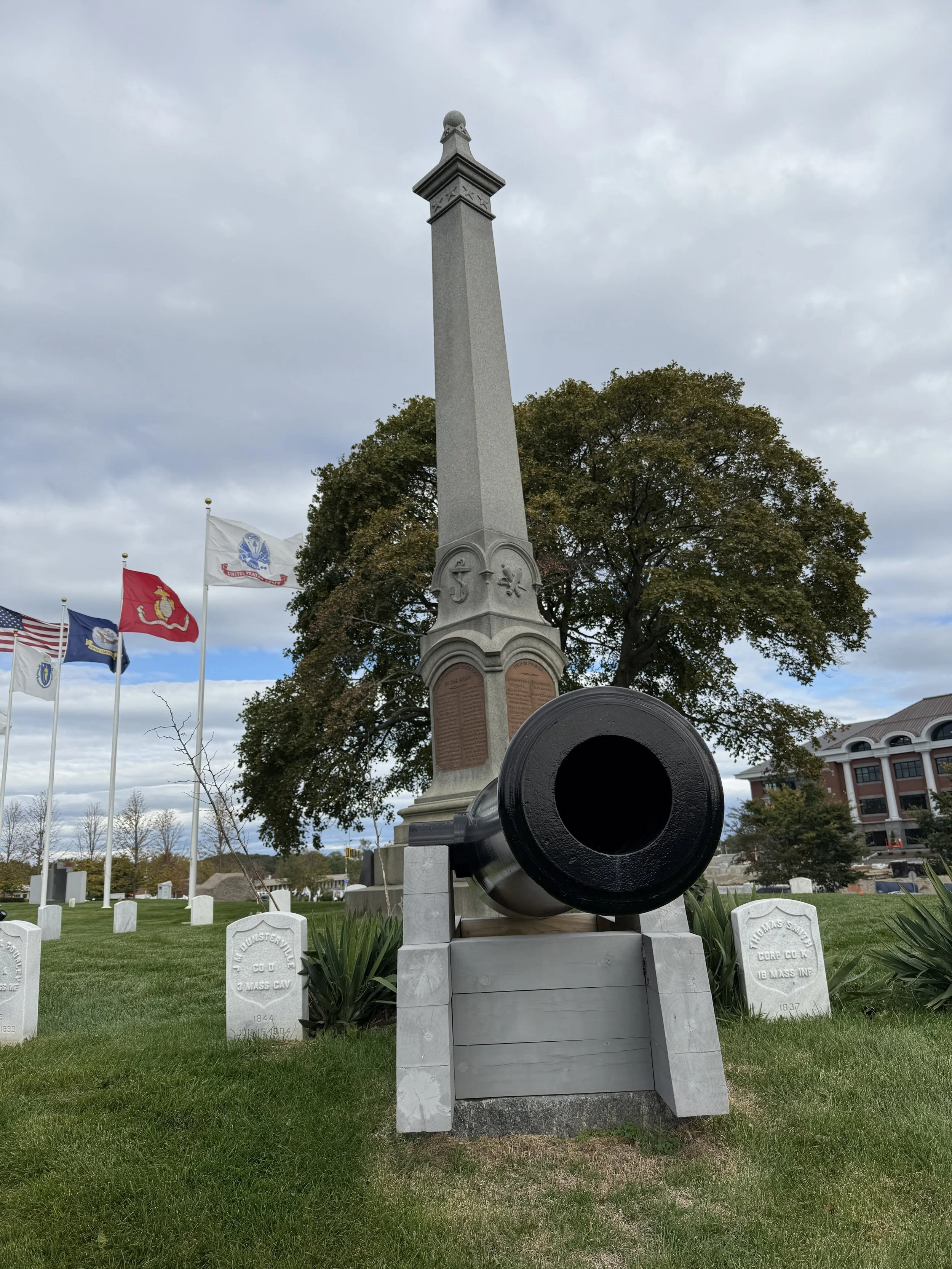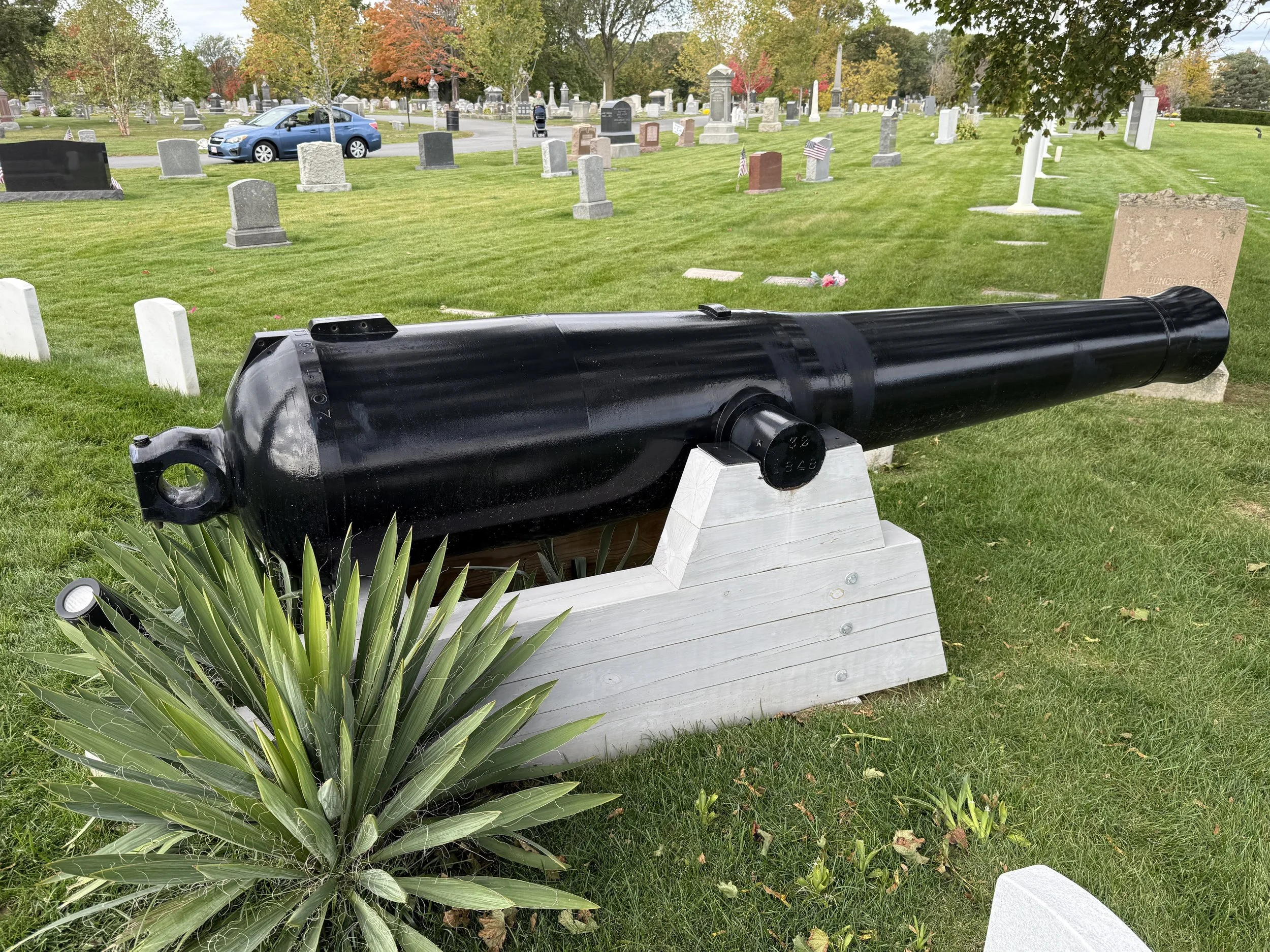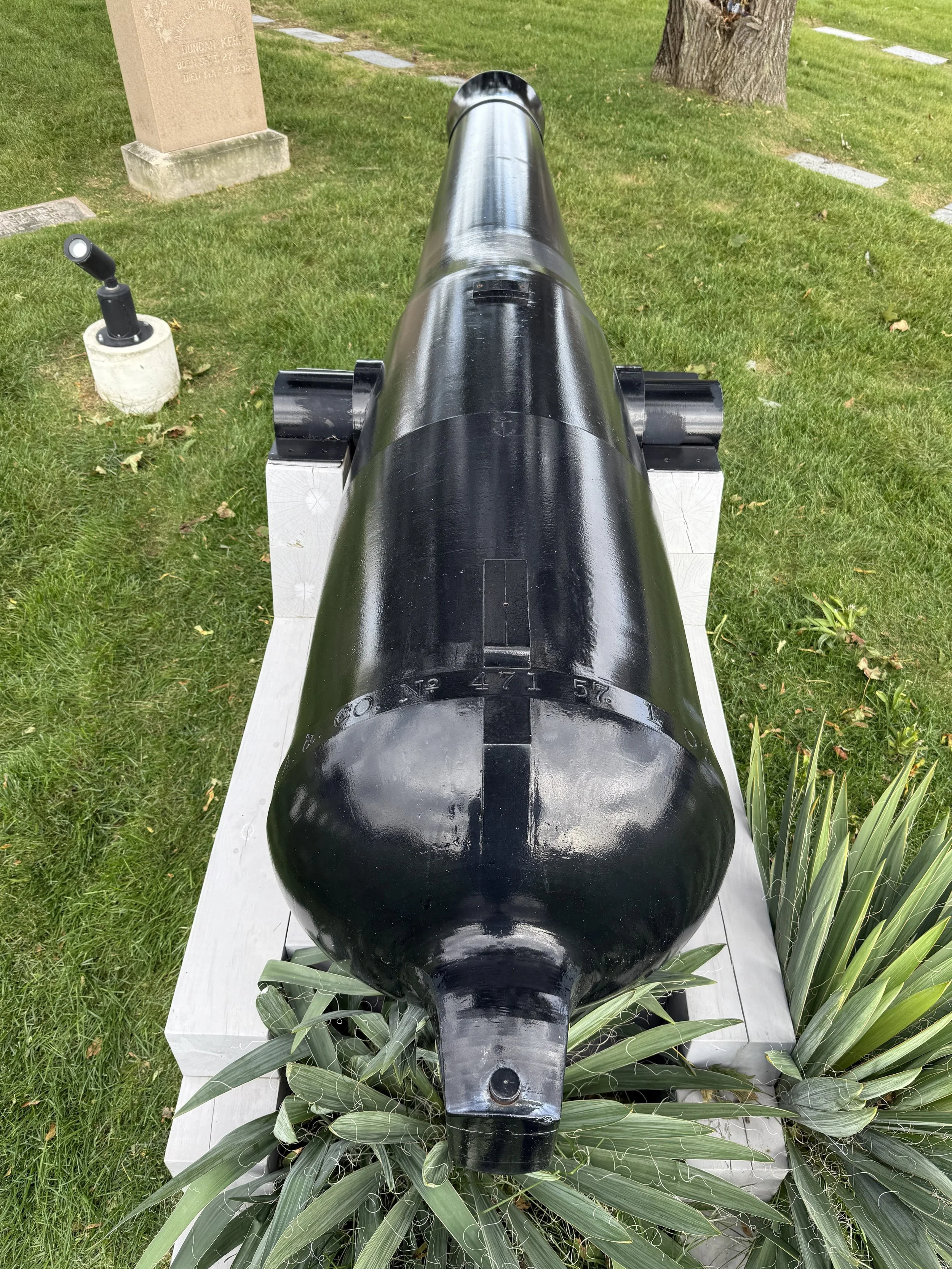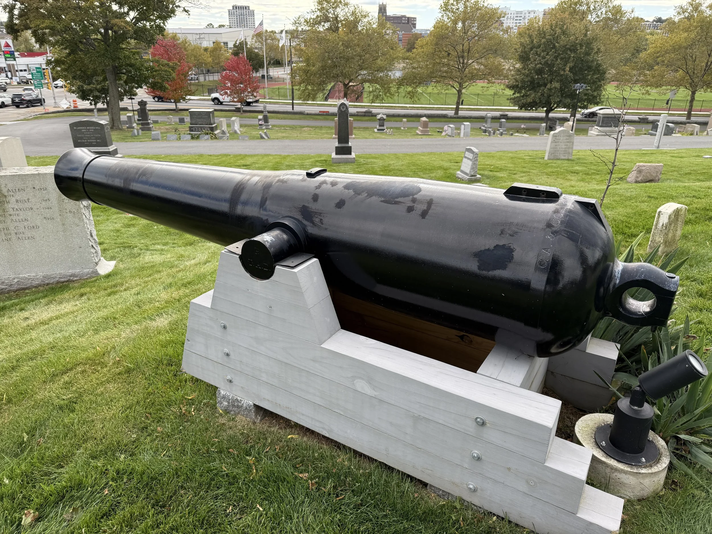 Four US Navy 32-Pounders of 57 Hundredweight surround a monument to those lost in the American Civil War in Mt. Wollaston Cemetery in Quincy, Massachusetts