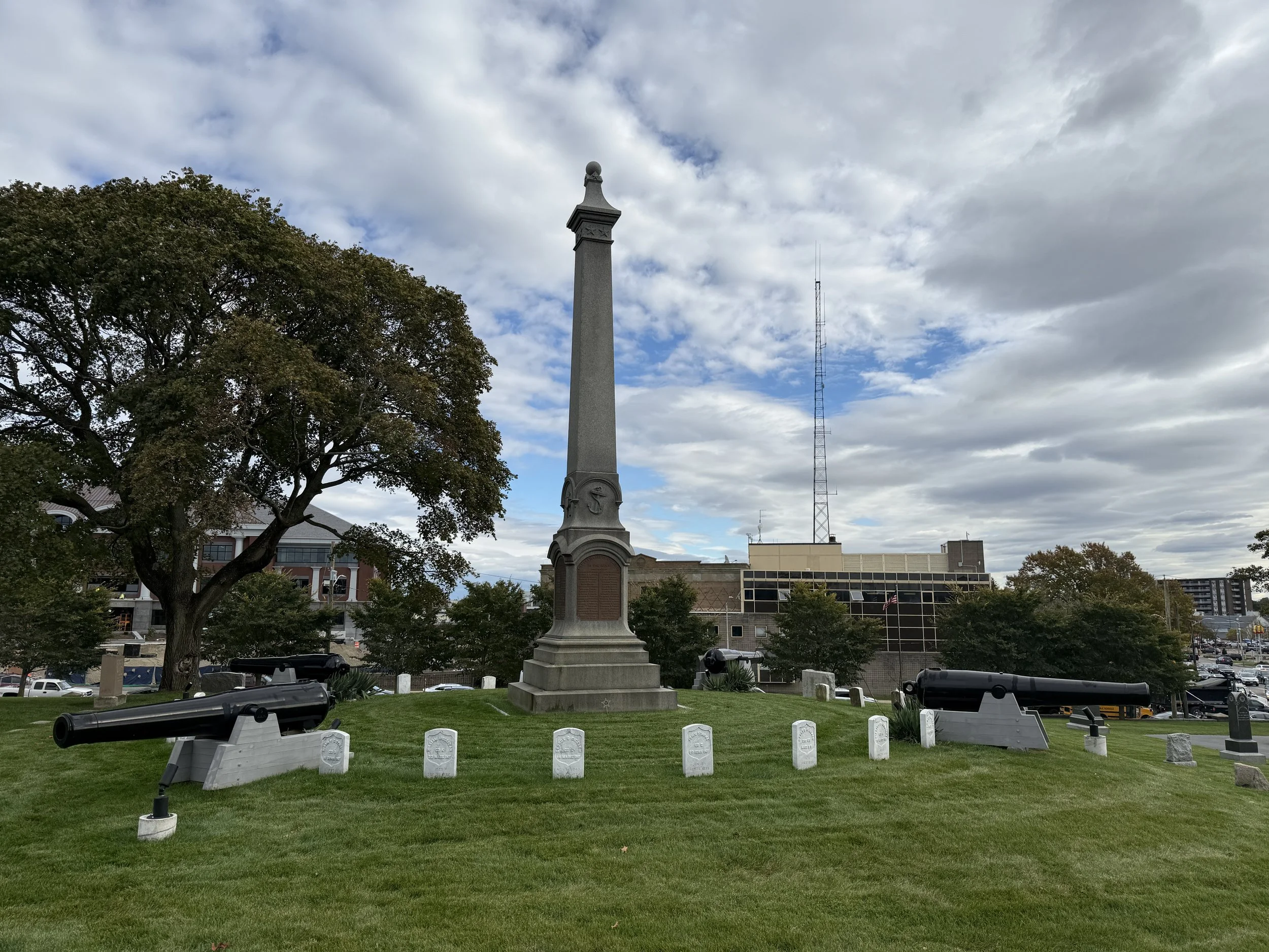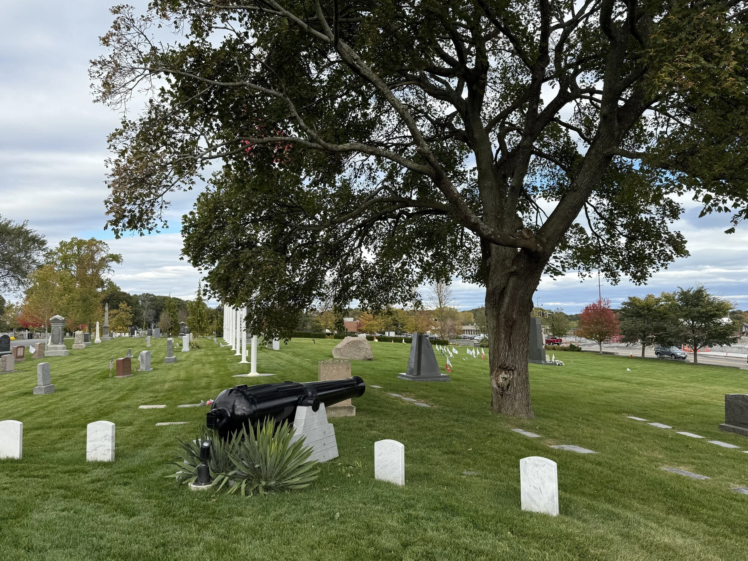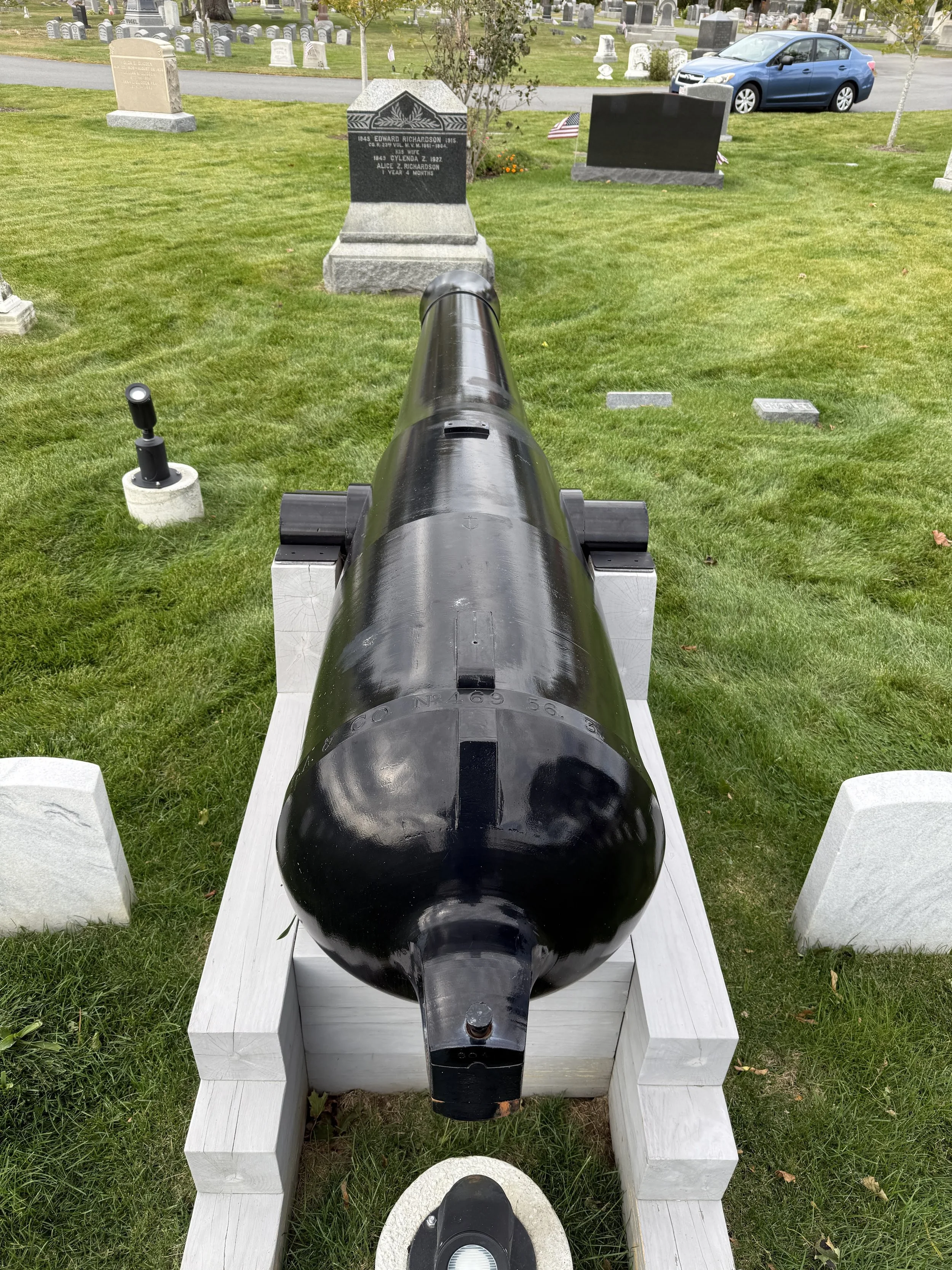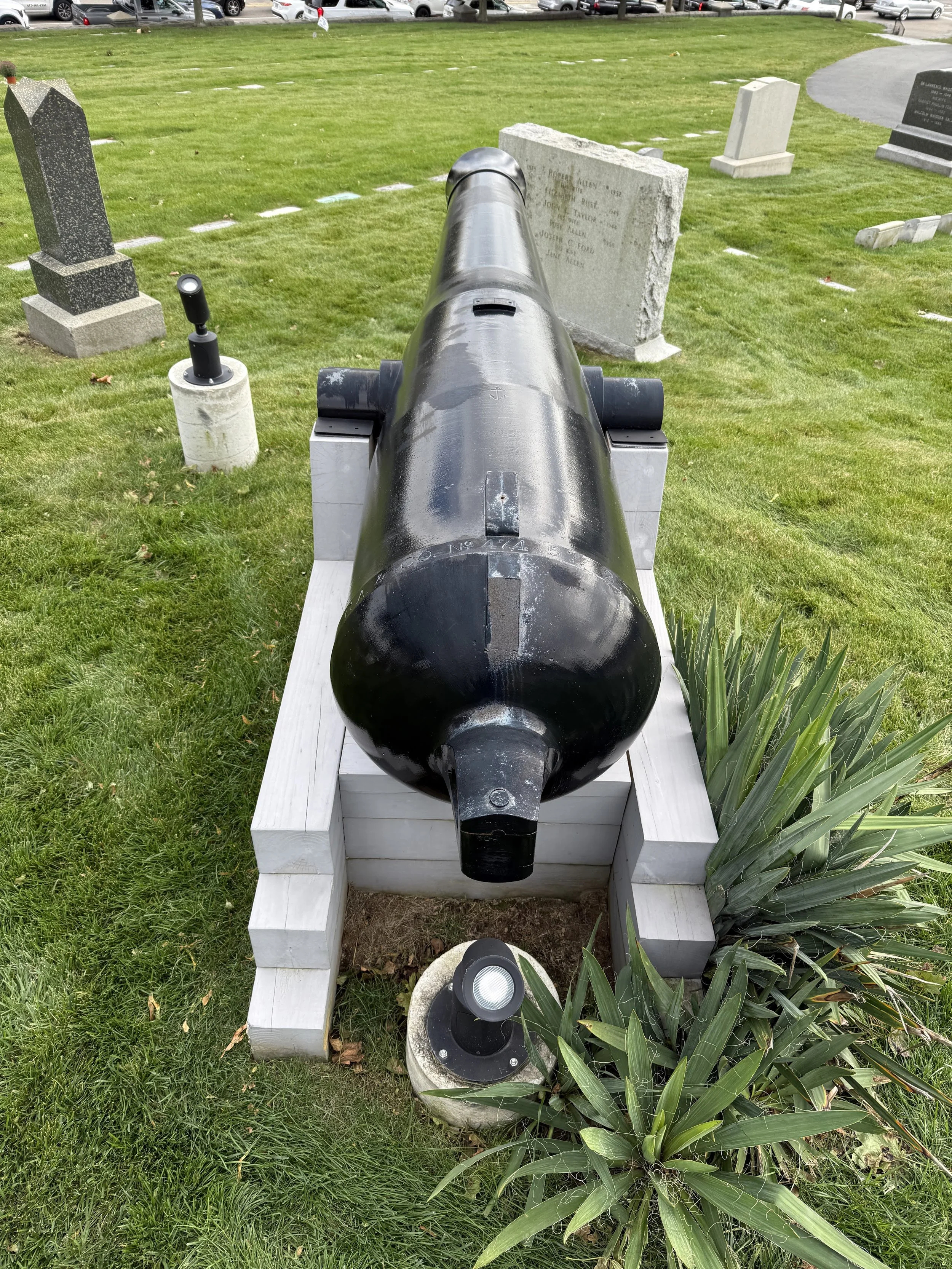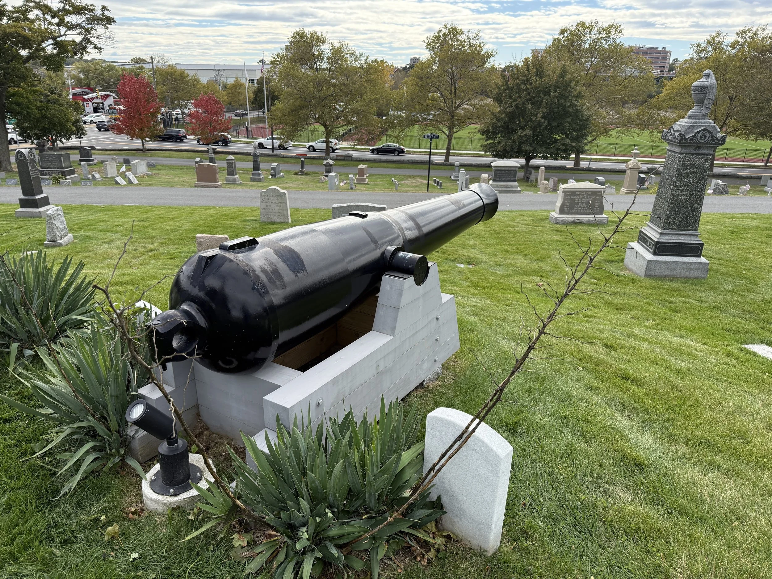 Four US Navy 32-Pounders of 57 Hundredweight surround a monument to those lost in the American Civil War in Mt. Wollaston Cemetery in Quincy, Massachusetts