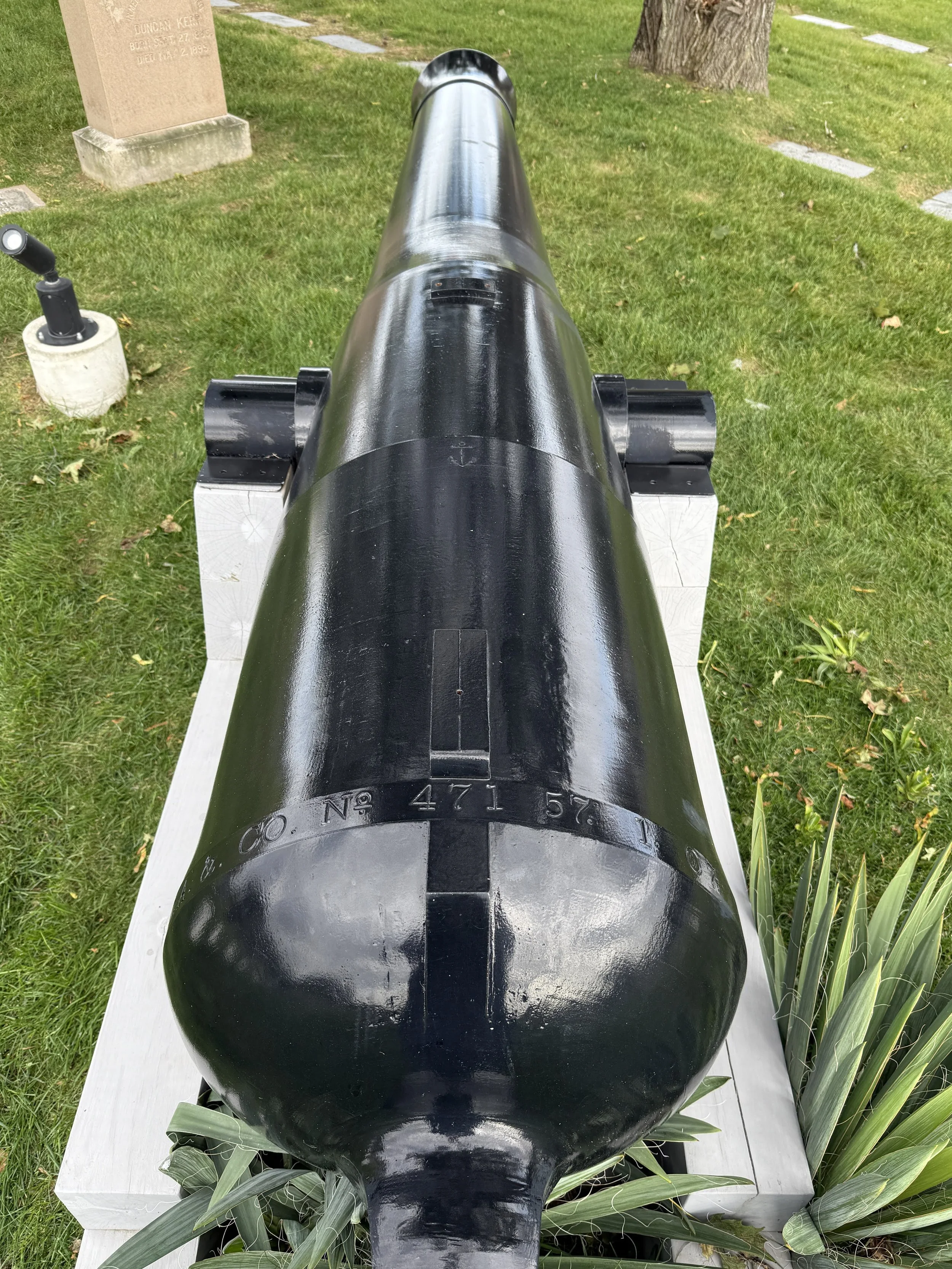 32-Pounder 57cwt Number 471 cast by Cyrus Alger & Co. in 1848. As manufactured it weighed 57-1-07 in hundredweight (6,419 pounds).