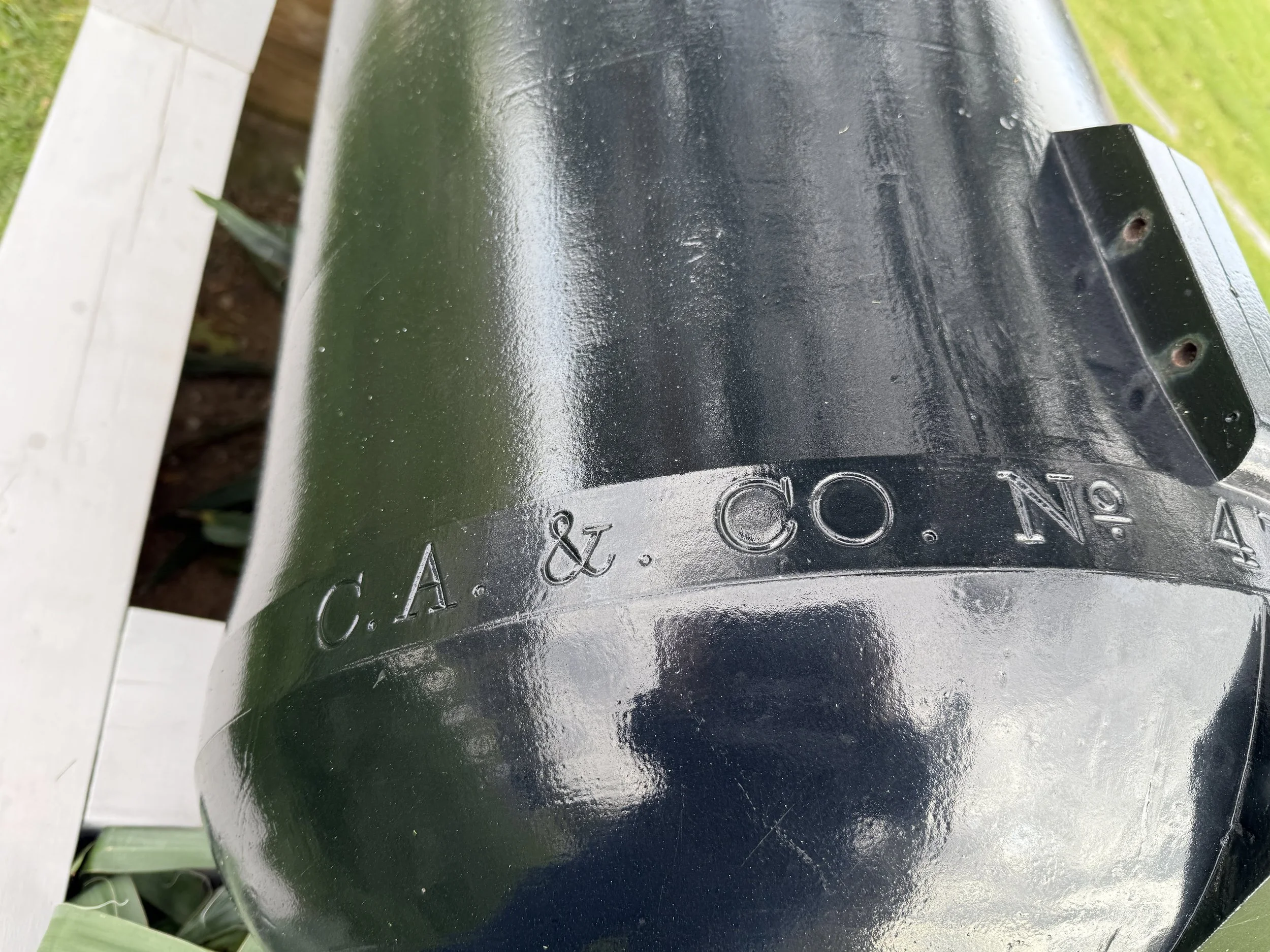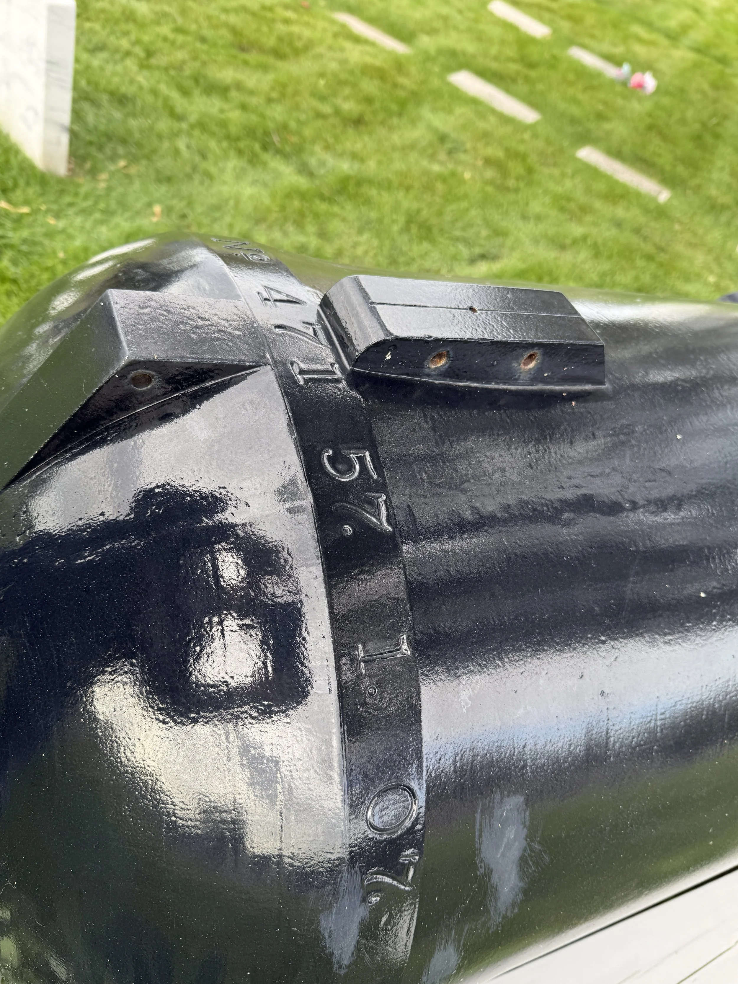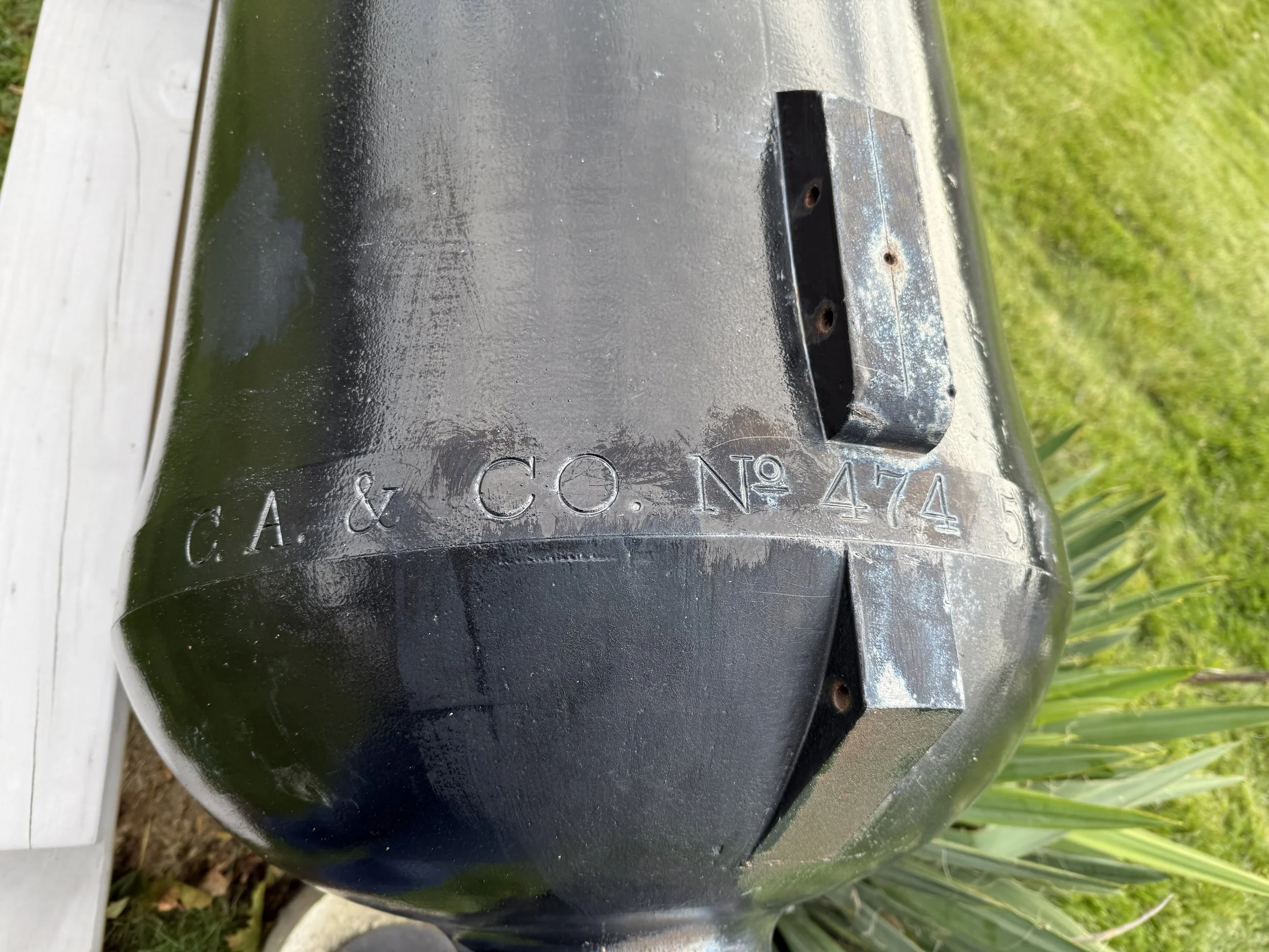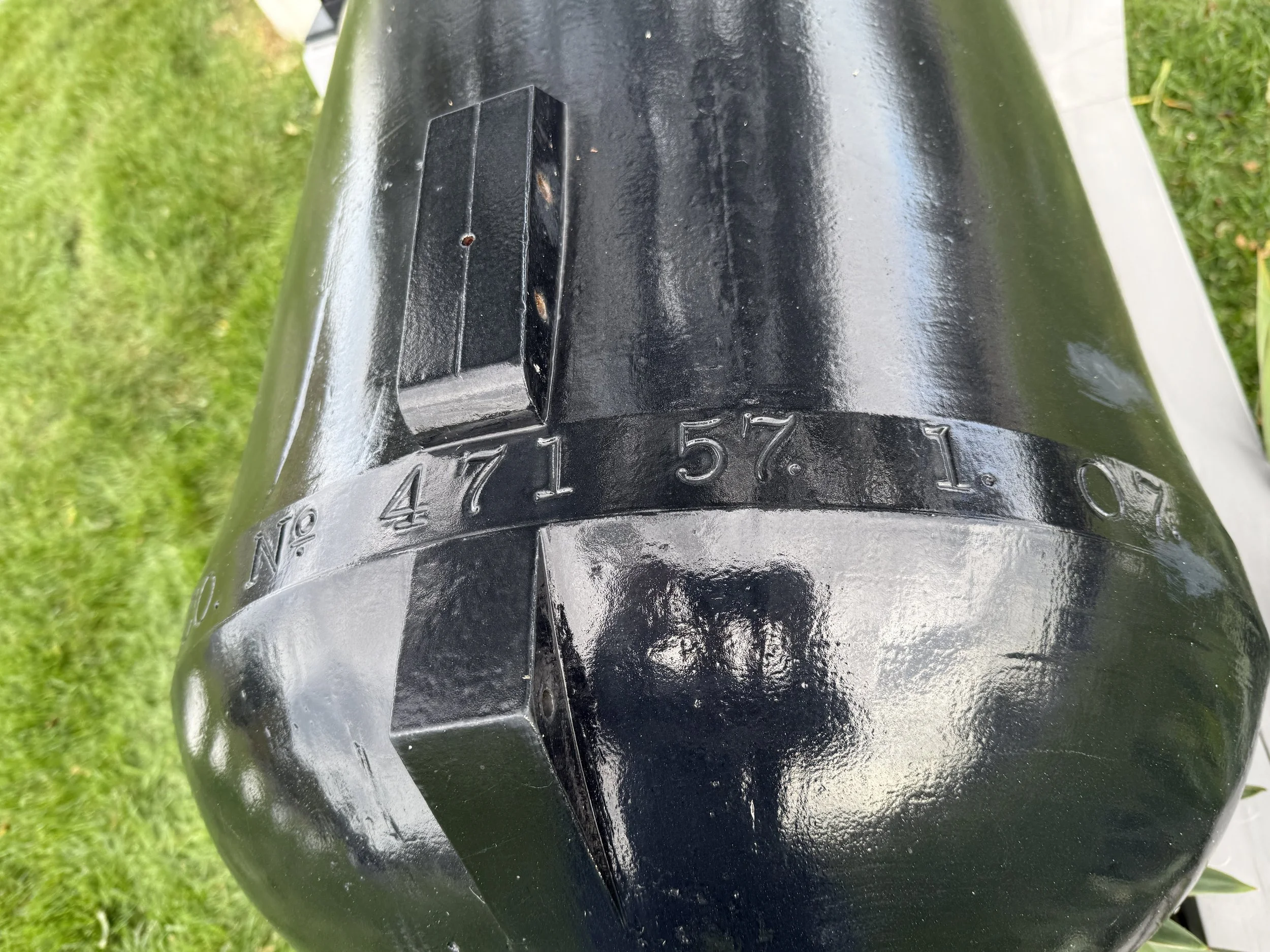 32-Pounder 57cwt Number 474 cast by Cyrus Alger & Co. in 1848. As manufactured it weighed 57-1-02 in hundredweight (6,414 pounds).