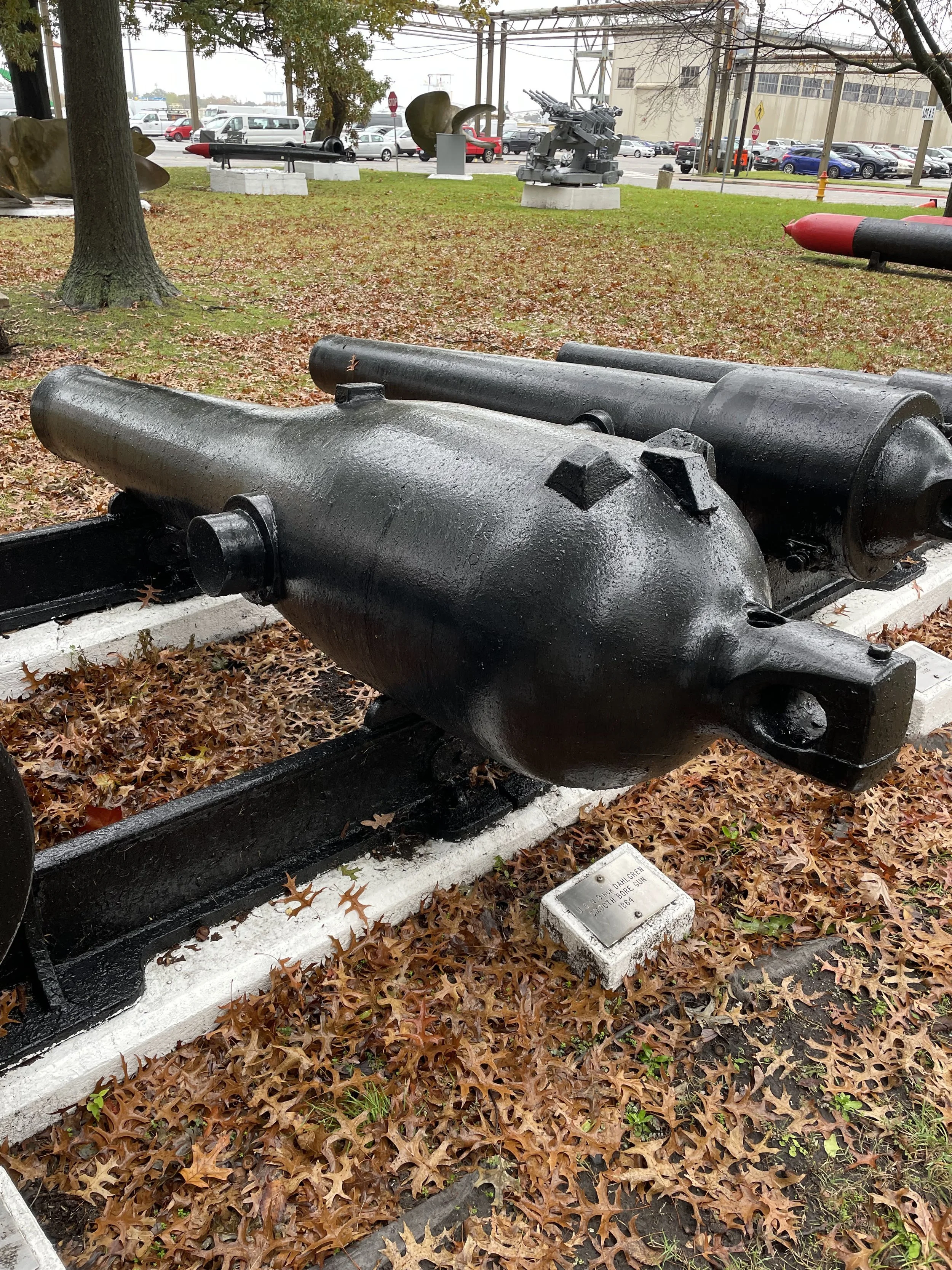 US Navy 9-Inch Dahlgren Number 887 is displayed at Trophy Park at Norfolk Naval Shipyard.